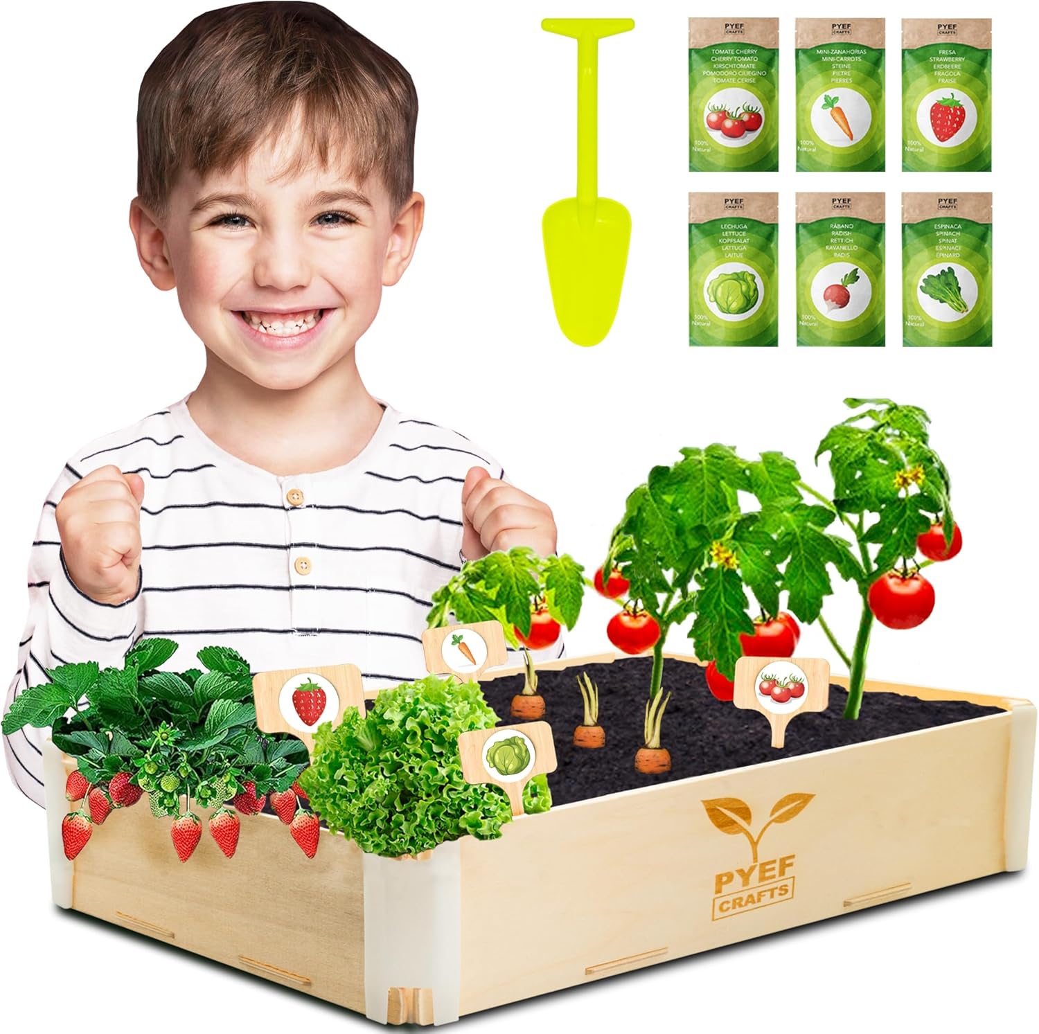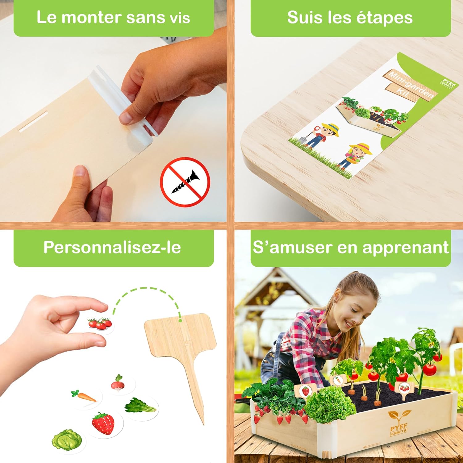 Ce kit de plantation offre tout le nécessaire pour initier vos enfants à la culture de leurs propres légumes. Il contient une boîte en bois, du substrat en fibre de coco, six variétés de graines, des étiquettes en bambou, des autocollants et des instructions. Plus qu’un simple jeu, c’est une véritable aventure éducative qui attend vos petits jardiniers en herbe.