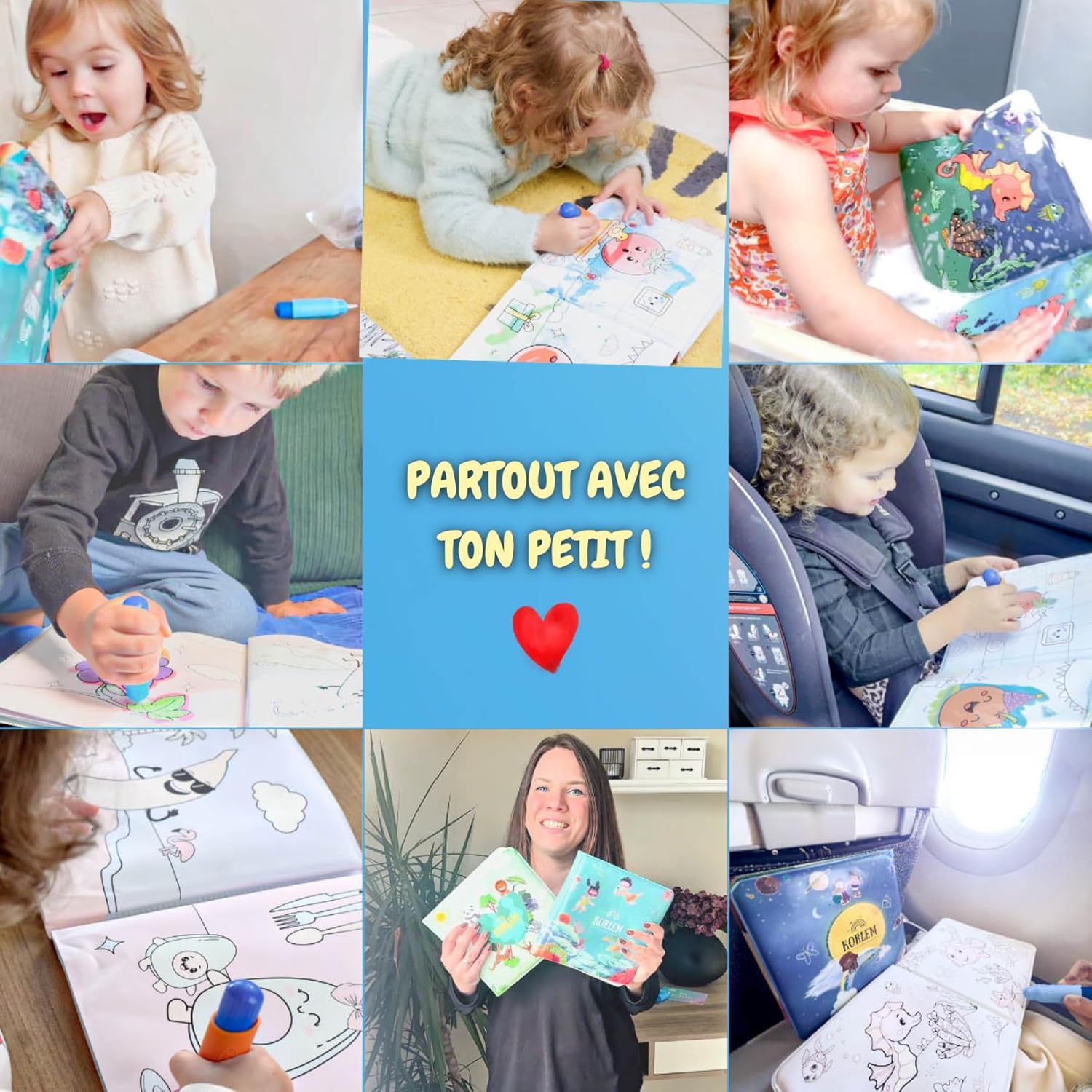 Conçu pour les enfants dès 18 mois, ce livre est doté d’un stylo à eau facile à remplir et parfaitement adapté aux petites mains. Sans odeur, sans produit toxique, il garantit une utilisation 100 % sûre pour les tout-petits. Les parents peuvent ainsi laisser leurs enfants s’amuser librement tout en ayant l’assurance qu’ils manipulent un produit totalement inoffensif.