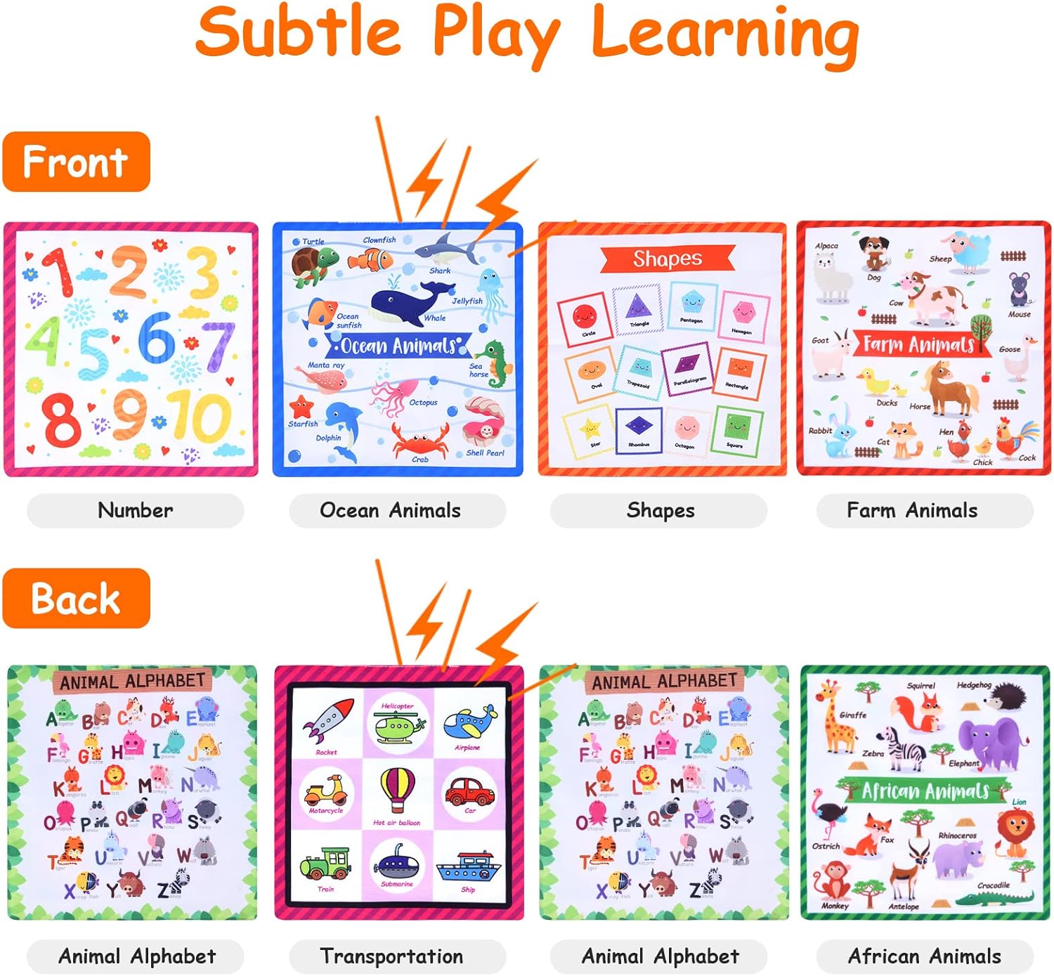 Le livre en tissu propose quatre thèmes captivants, incluant des animaux adorables, des fruits colorés et bien plus encore. Ces illustrations attrayantes captivent l’attention des tout-petits tout en leur permettant de découvrir le monde qui les entoure. En plus du livre, les 15 foulards en soie multicolores inclus offrent une expérience sensorielle complète : ils aident à stimuler la vision grâce à leurs teintes vives, l’ouïe grâce à leurs textures bruissantes, et même la coordination main-œil.