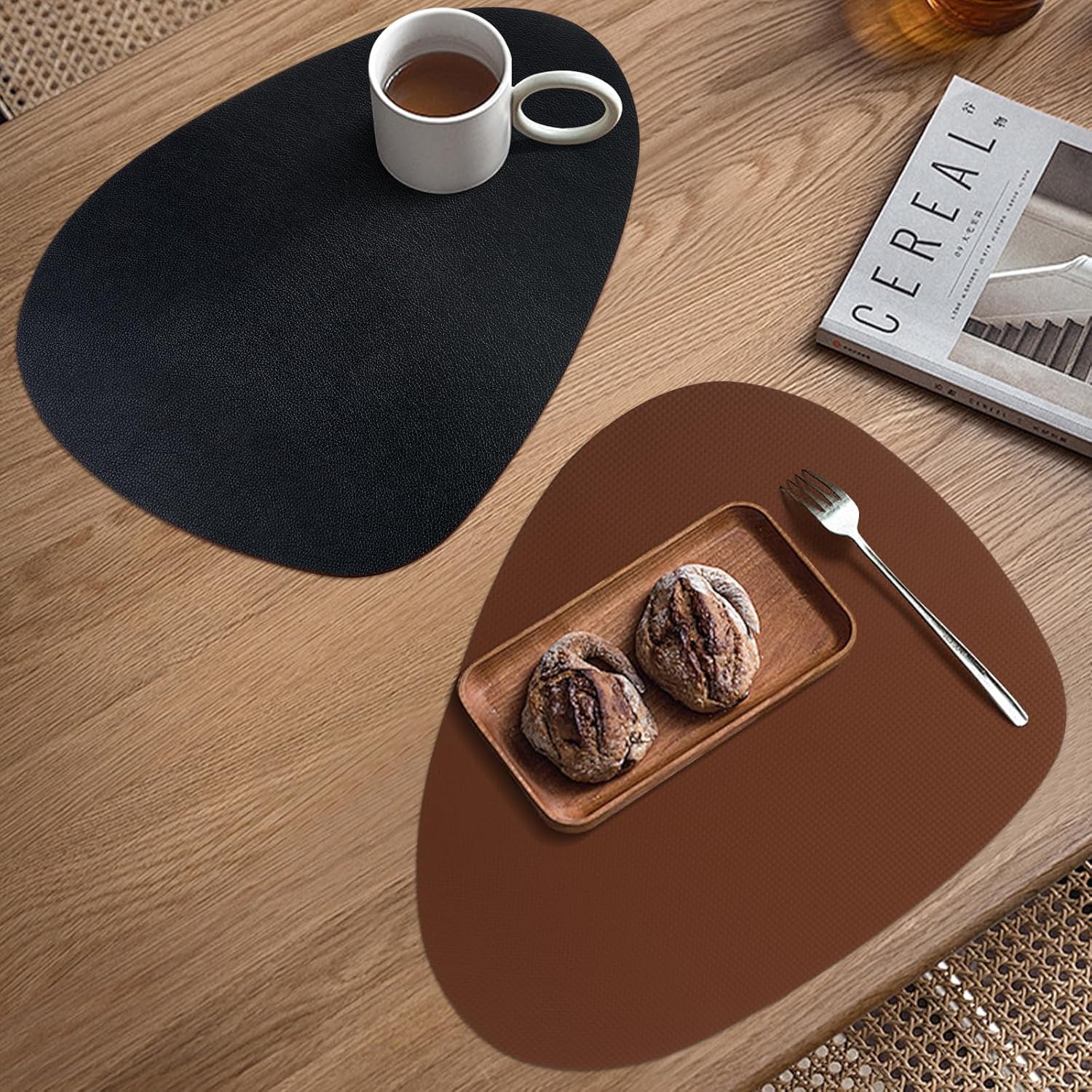 Contrairement aux sets de table classiques, cette version Montessori offre une double durabilité. Grâce à leur conception double face, les miettes n’adhèrent pas au fond. Le cuir à motif litchi est d’une résistance remarquable. De plus, chaque côté présente une couleur différente, offrant ainsi deux sets de table en un. Vous pouvez ainsi changer de style en un clin d’œil.