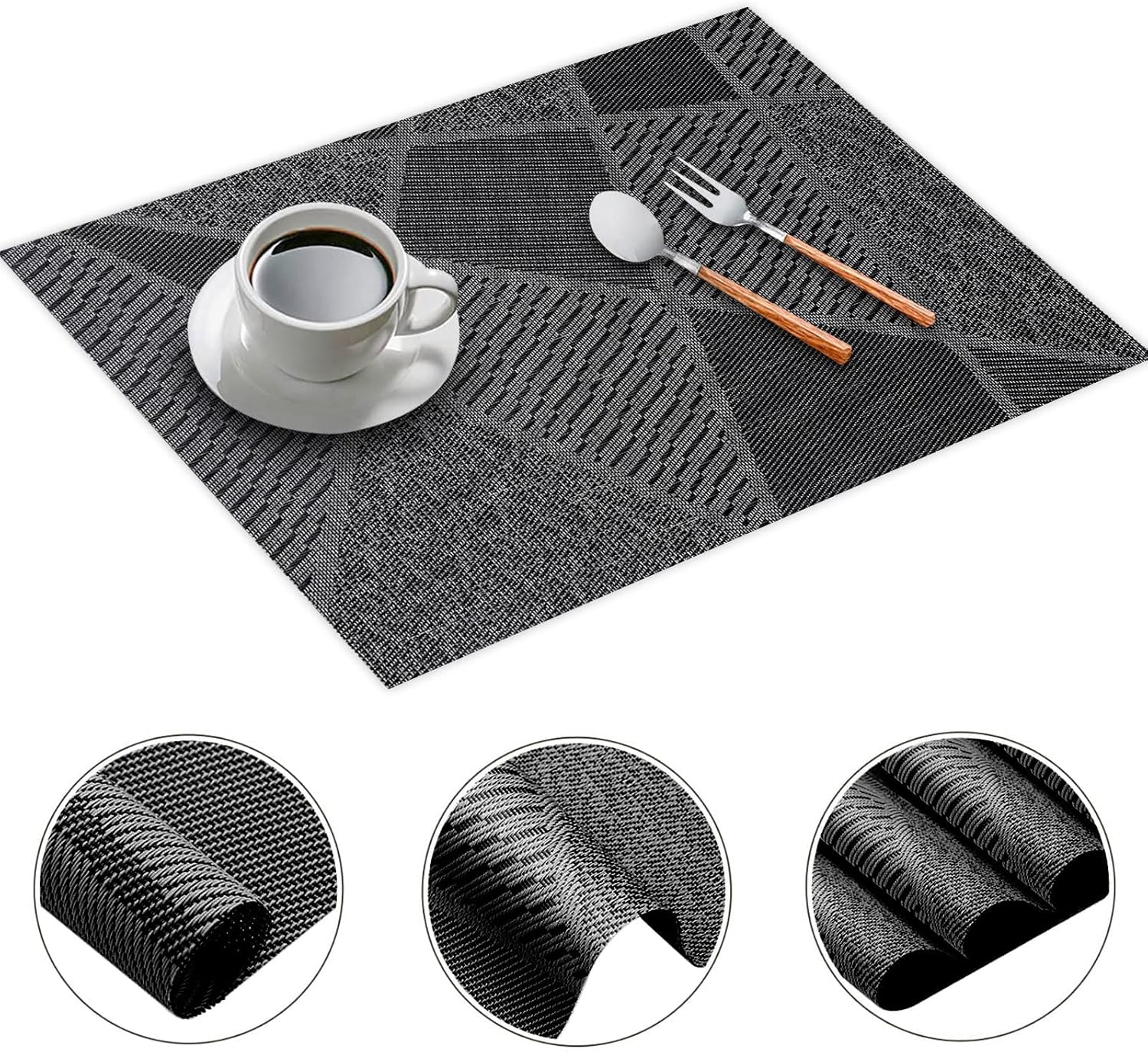 Lot de 6 sets de table Montessori gris foncé, lavables et résistants à la chaleur