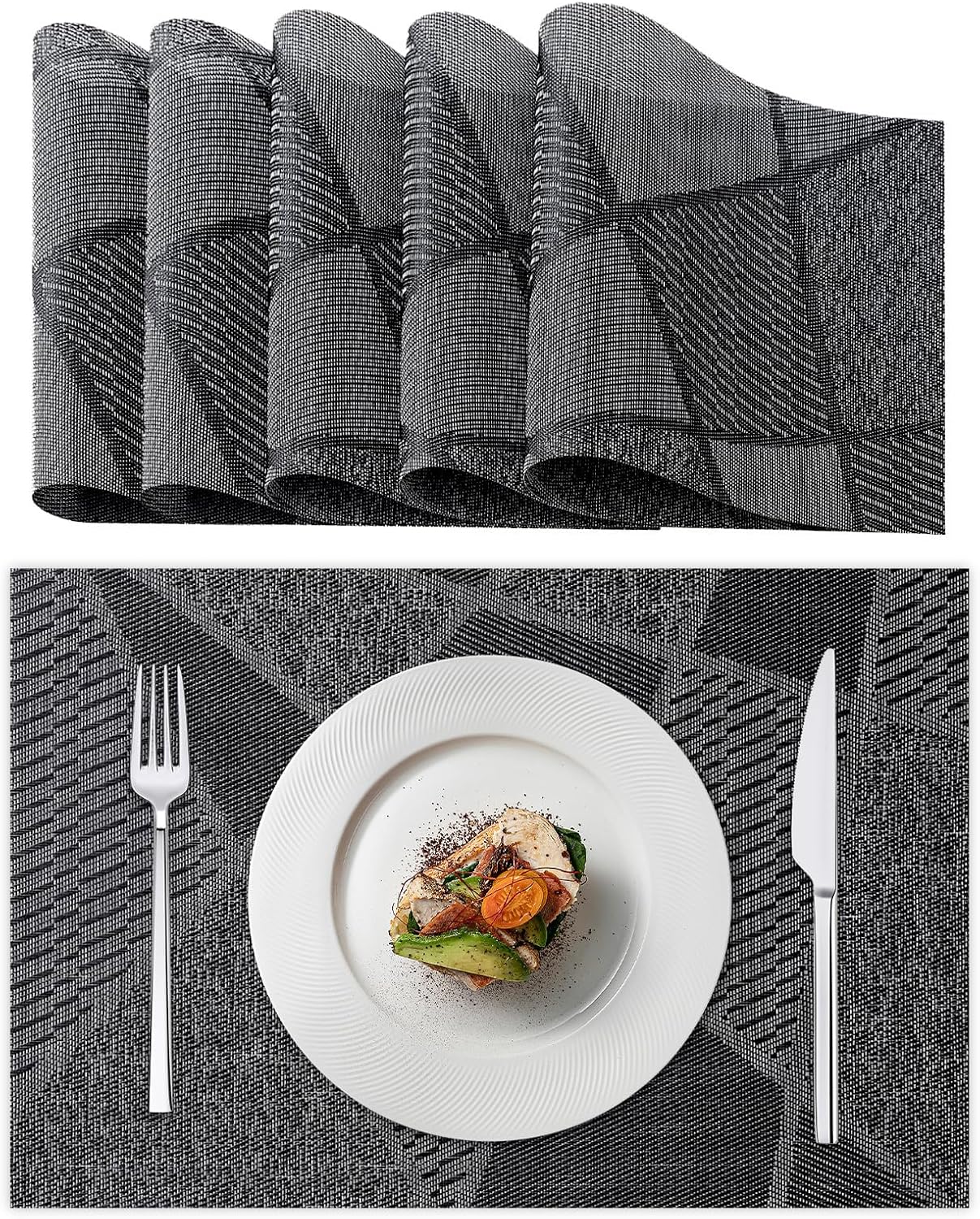 Ces sets de table sont conçus à partir de matériaux haut de gamme : 70% de PVC pour une surface robuste résistant aux chocs et aux abrasions, et 30% de polyester pour plus de souplesse et une douceur au toucher. Cette combinaison garantit une apparence élégante et une fonctionnalité préservées même après une utilisation prolongée.
