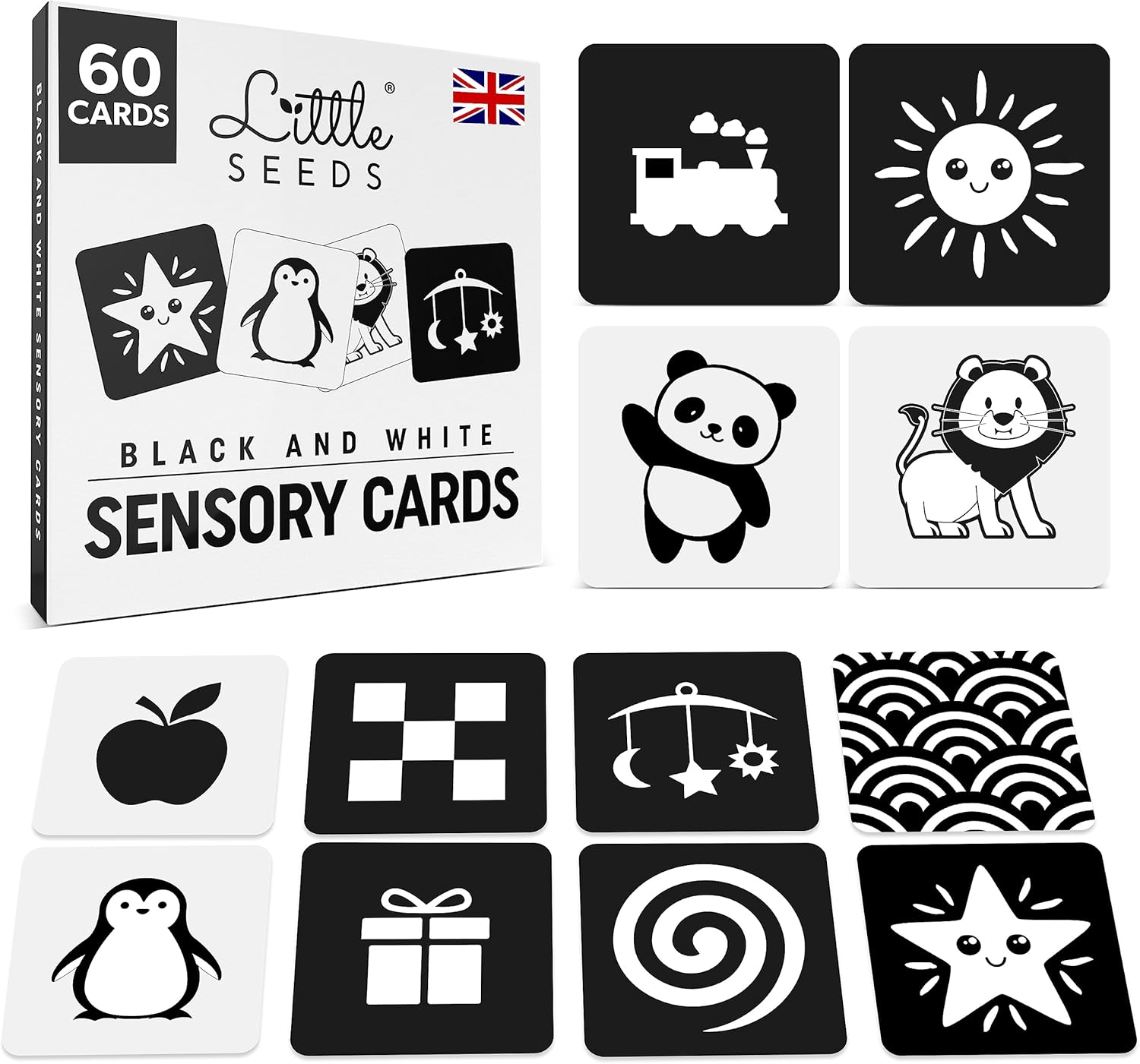 Lot de 60 cartes sensorielles Montessori pour nouveau-nés – Contraste élevé noir et blanc