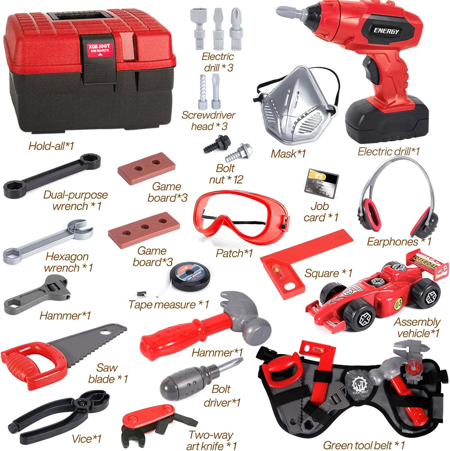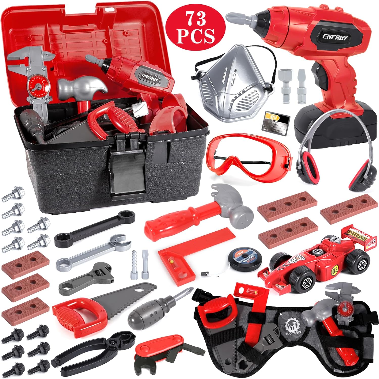 Découvrez la Malette d’outils Montessori MULEVIP pour enfant, un véritable trésor ludique et éducatif conçu spécialement pour les enfants de 3 à 10 ans. Cette mallette d’outils complète contient 73 pièces, dont une perceuse électrique, une ceinture à outils, un ruban à mesurer, une voiture de montage, un masque, des lunettes de sécurité et bien d’autres encore.
