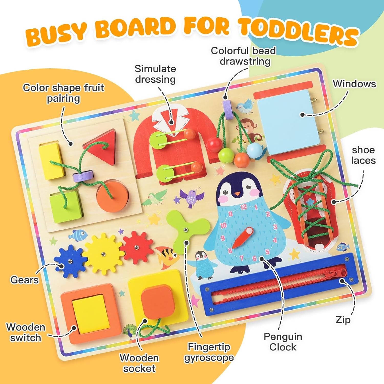 Busy Board Montessori : Jouet Éducatif Sensoriel 9-en-1 pour Enfants de 2 à 5 ans