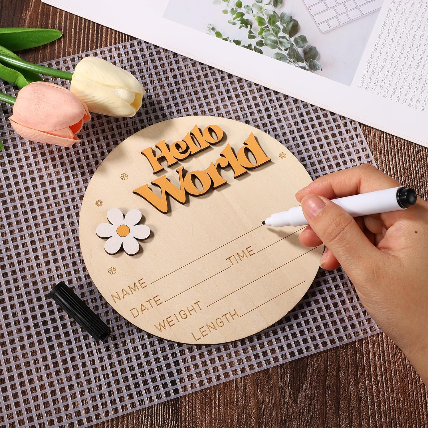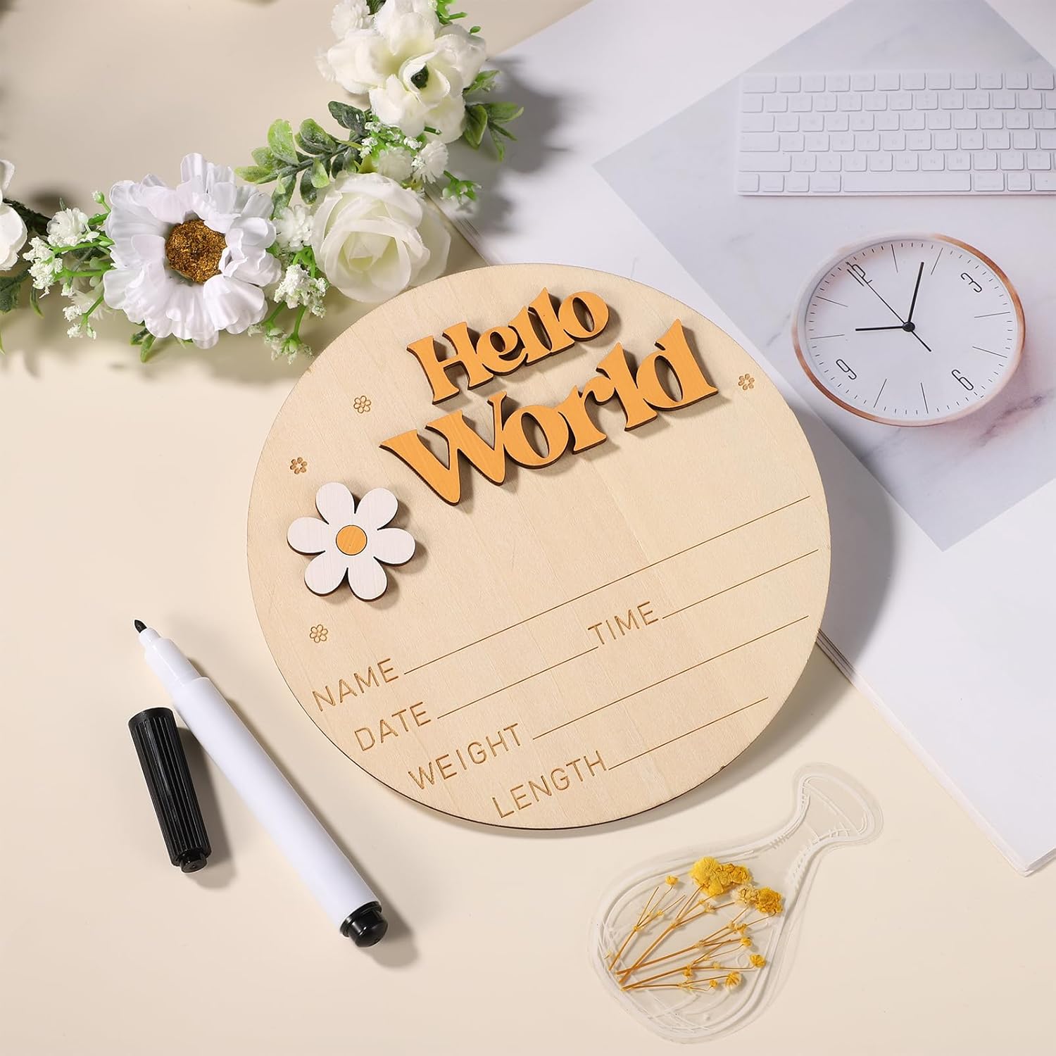 Ce panneau d’annonce est fourni avec un stylo pratique, spécialement conçu pour inscrire les informations importantes telles que le nom, la date, l’heure de naissance, le poids et la taille du bébé. Aucune préparation supplémentaire n’est nécessaire : il vous suffit de laisser parler votre créativité pour immortaliser ces détails précieux. Son format compact, d’un diamètre d’environ 15 cm, facilite son transport et son rangement.