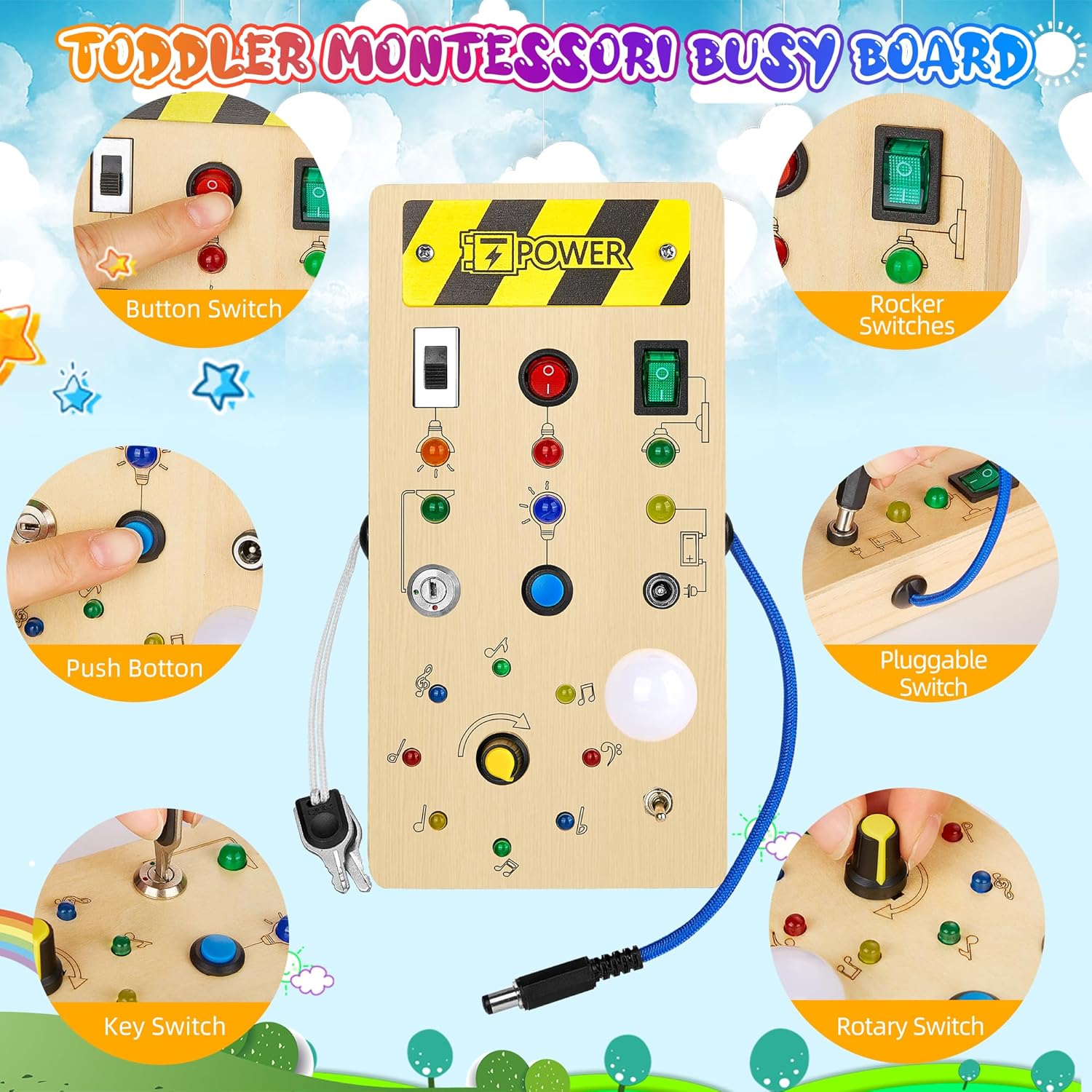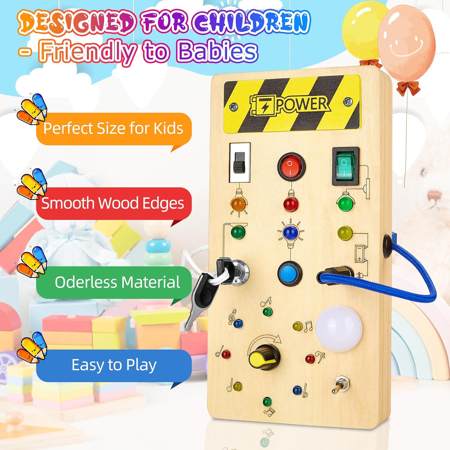 Cette planche sensorielle unique est conçue pour stimuler les capacités de reconnaissance et les activités sensorielles de votre enfant. Elle est un outil fantastique pour améliorer leurs capacités motrices et leur esprit de résolution des problèmes. Avec des combinaisons infinies de boutons, fils et lumières, votre enfant sera captivé pendant des heures. Ce jeu hautement interactif est fortement recommandé aux enfants qui aiment apprendre en jouant.