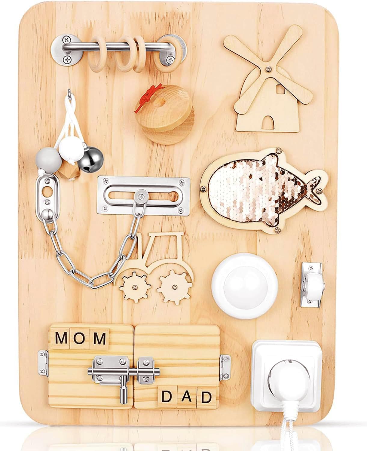 Conçue pour favoriser le développement des compétences motrices fines, notre planche d’activité offre à votre enfant une expérience tactile riche et variée. Grâce à ses nombreuses fonctionnalités, elle permet l’apprentissage de compétences de vie intéressantes tout en répondant à la curiosité naturelle de votre enfant.