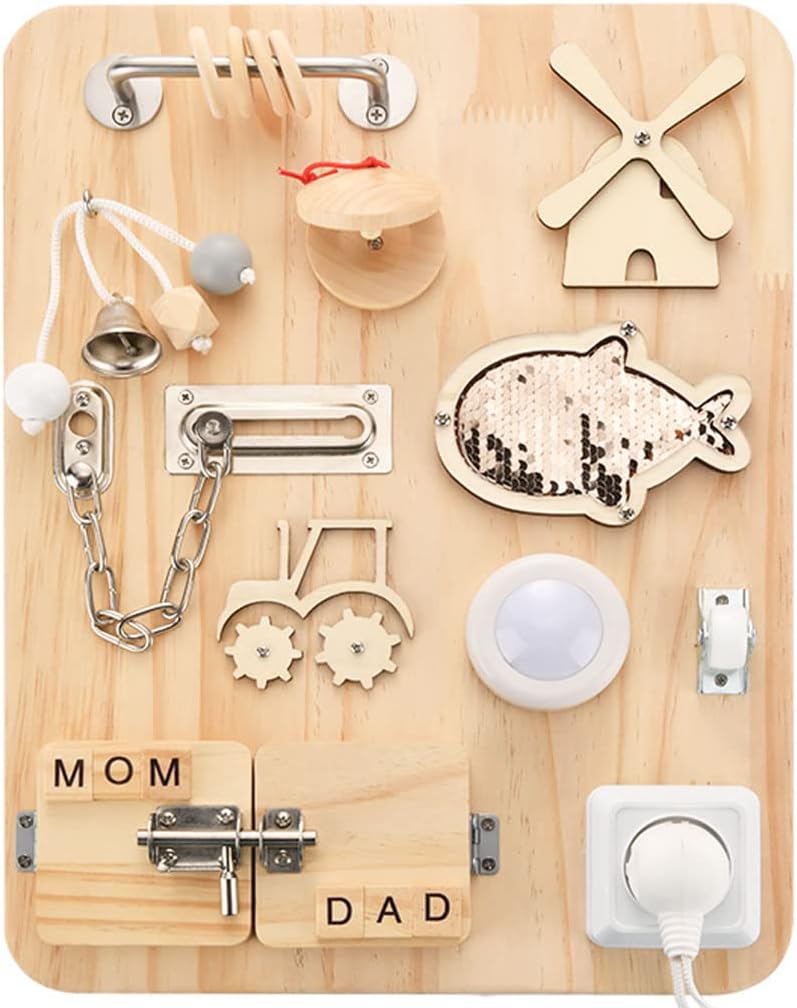 Busy Board Montessori en Bois : Jouet Éducatif Sensoriel pour Enfants de 3 Ans