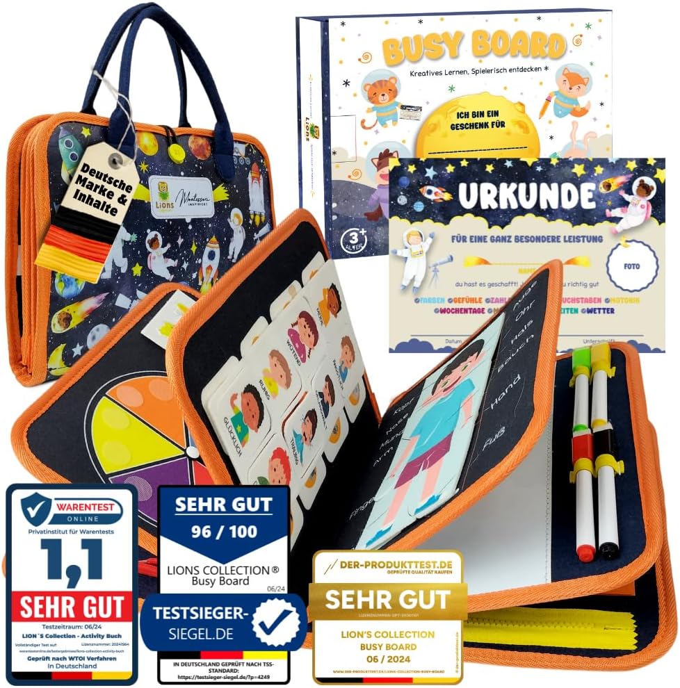 Fabriquée en feutre résistant et facile à nettoyer, notre planche d’activité répond aux normes de sécurité les plus élevées. Des tests rigoureux sur les substances nocives garantissent que votre enfant peut jouer et apprendre dans un environnement sûr.