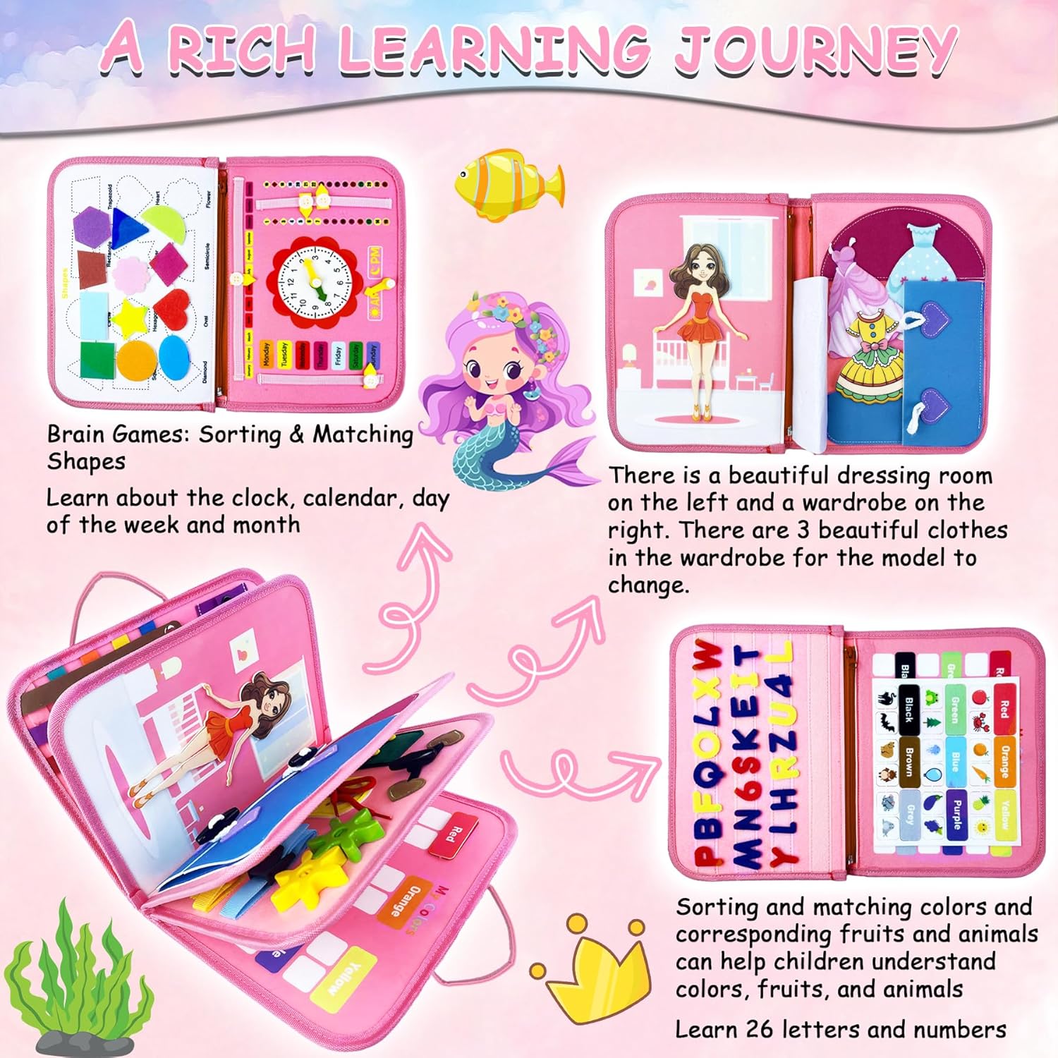En quête du cadeau idéal alliant amusement et valeur éducative ? Cette planche d’activité Montessori est le choix parfait. Elle est facile à nettoyer avec une lingette humide et reste comme neuve même après une utilisation prolongée. Avec ses motifs adorables de sirènes, elle fera le bonheur de votre enfant, que ce soit pour un anniversaire ou pour Noël.