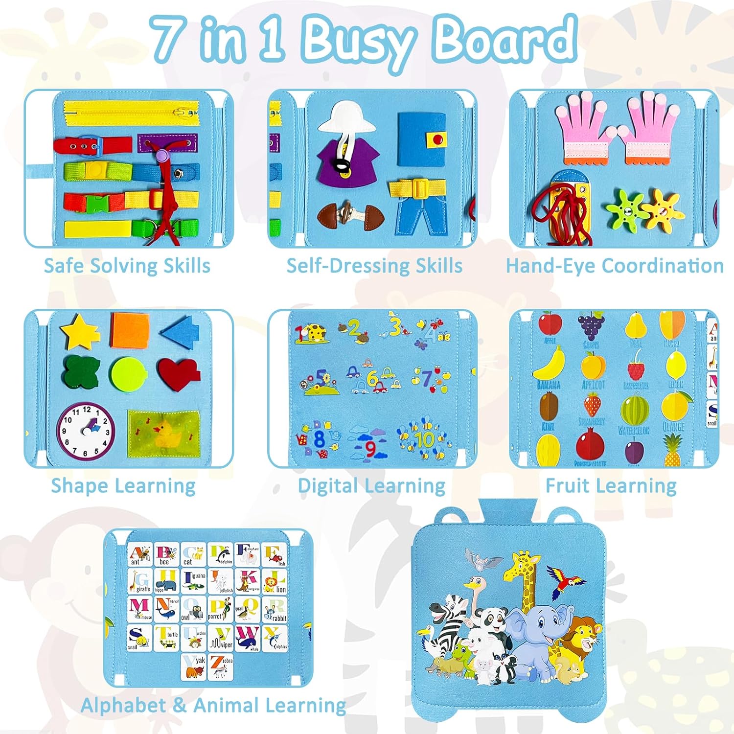 Intégrez à votre foyer la planche d’activités Montessori 7-en-1 Withosent, conçue spécifiquement pour les enfants âgés de 1 à 4 ans. Cette planche, aussi appelée busy board, est un véritable concentré d’éveil et d’apprentissage, alliant l’aspect ludique au développement cognitif et sensoriel de votre enfant.