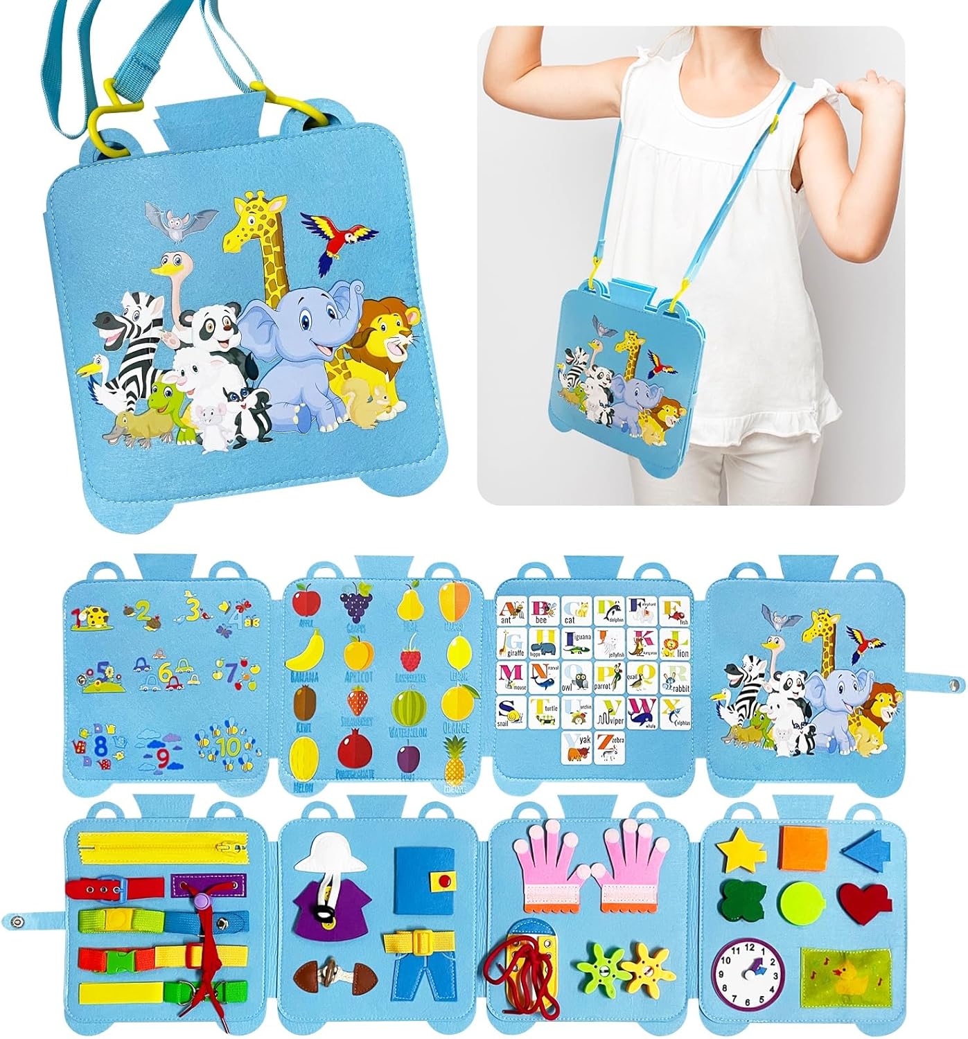 La planche d’activités Withosent est basée sur les principes de la pédagogie Montessori, une méthode d’enseignement qui encourage l’autonomie et la confiance en soi chez l’enfant. Avec ses 23 types de compétences de base à maîtriser, cette planche offre une multitude d’activités stimulantes : boucles, boutons, fermetures éclair, poches, lacets, horloges, et bien plus encore. Elle propose également une initiation aux graphiques, aux lettres anglaises, aux fruits et aux chiffres, permettant ainsi à votre enfant d’élargir son champ de connaissances tout en s’amusant.