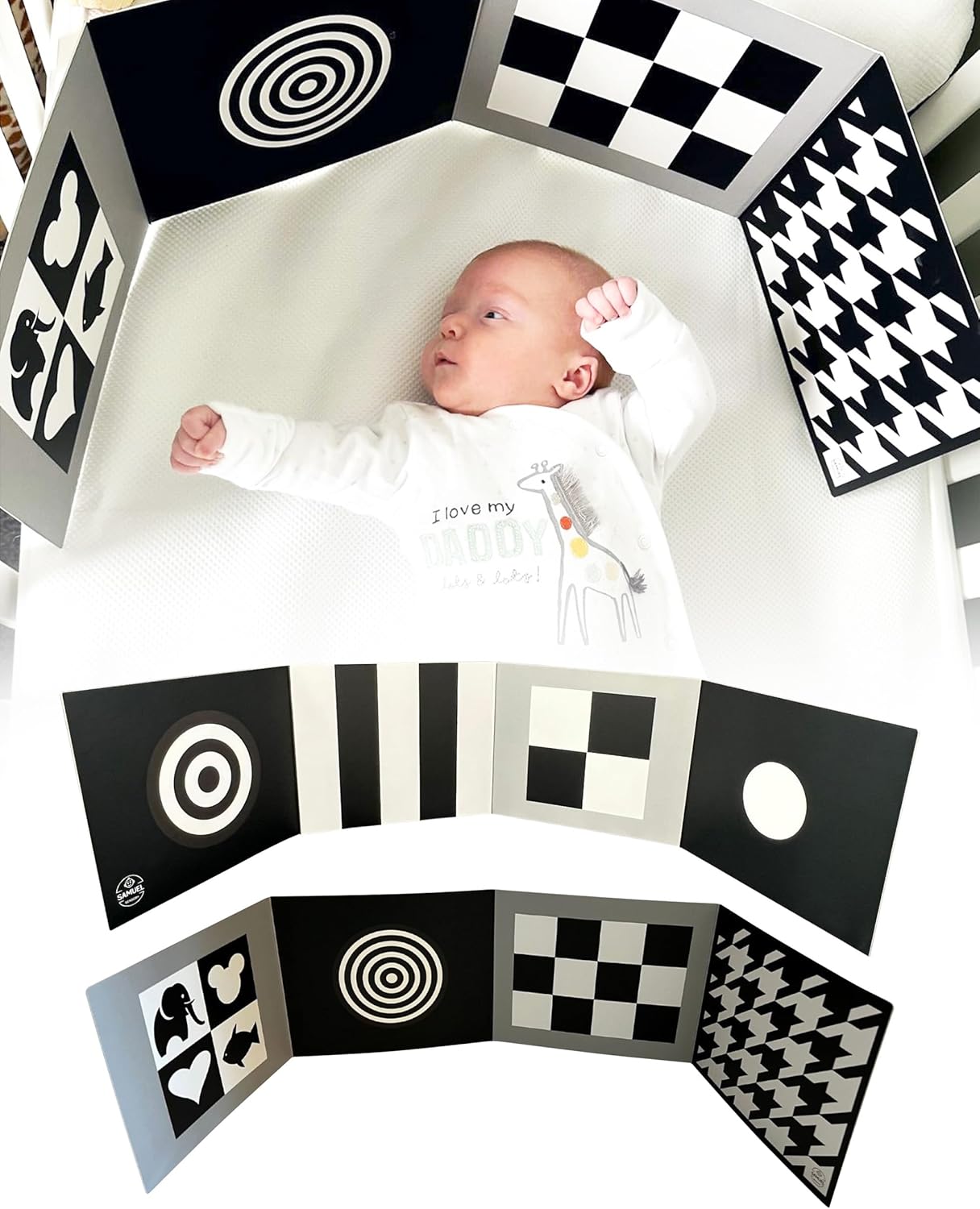 Découvrez la planche de développement sensoriel bébé Montessori, un véritable allié dans l’éveil et le développement de votre enfant. Conçue spécifiquement pour stimuler la vue de votre bébé, elle utilise des formes géométriques simples et contrastées en noir et blanc, des couleurs auxquelles les bébés répondent particulièrement bien.