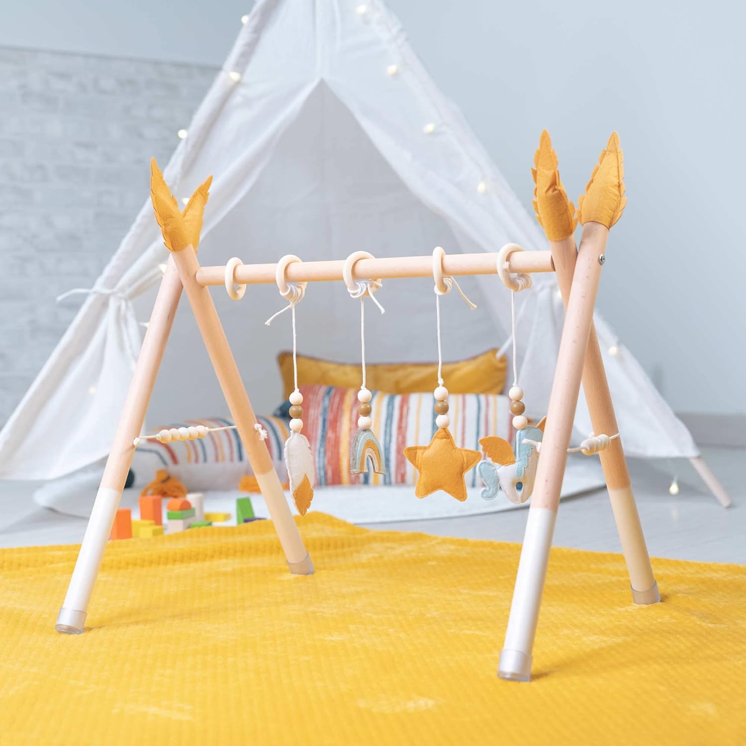Portique d’éveil Montessori Robincool pour bébés en bois écologique