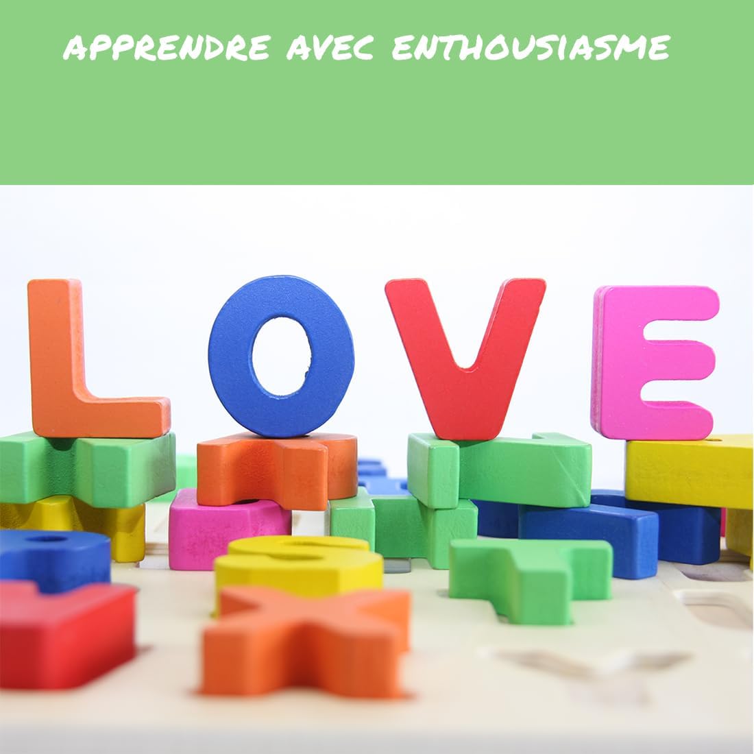 Ce puzzle est conçu à partir de bois, une matière première naturelle, robuste et respectueuse de l’environnement. L’intégrité du produit est assurée par sa composition 100% bois, garantissant sa longévité et sa résistance aux multiples manipulations. La couleur des grandes lettres renforce l’attrait visuel du jeu, stimulant ainsi la curiosité et l’éveil sensoriel des enfants.