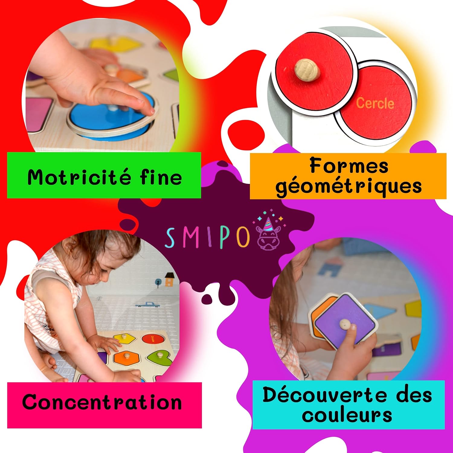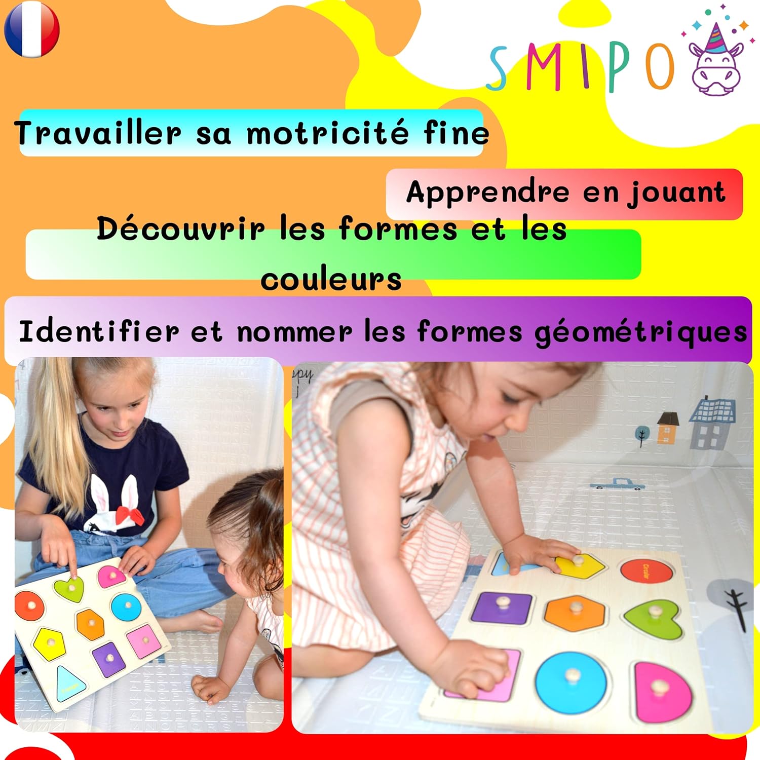 Puzzle Montessori en bois : apprentissage des formes et couleurs pour bébés et enfants