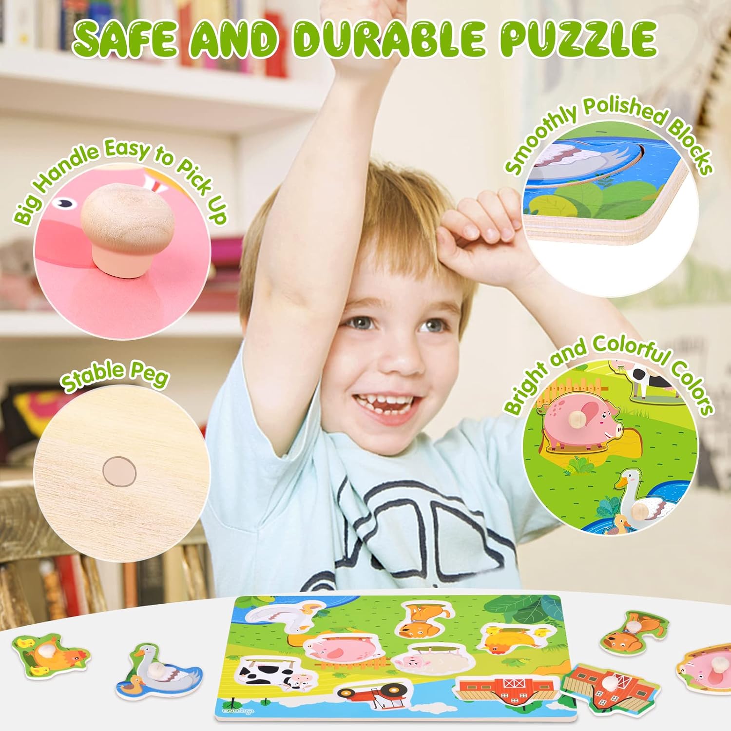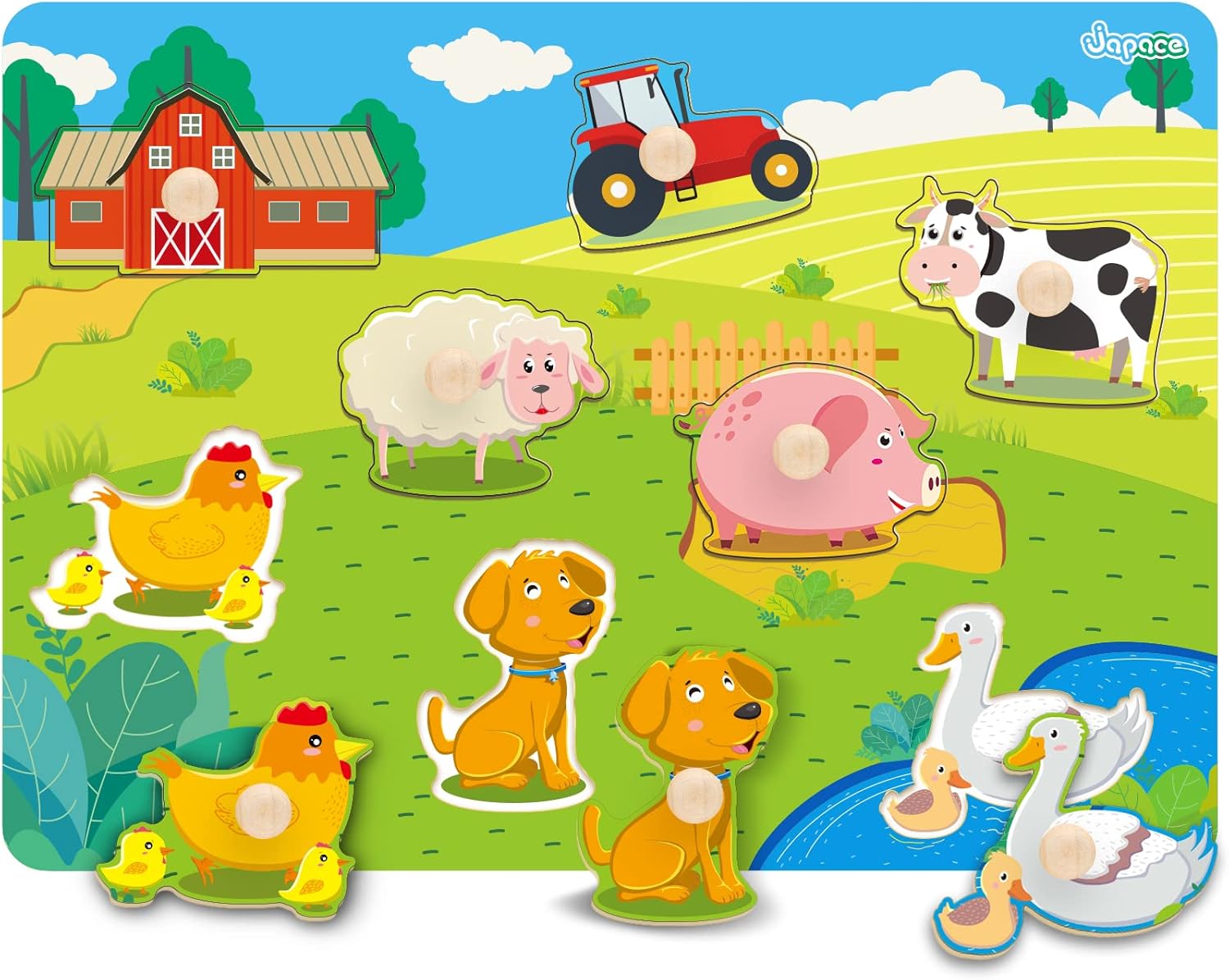 Puzzle Montessori en bois pour enfants de 1 à 2 ans : jeu éducatif d’animaux de la ferme