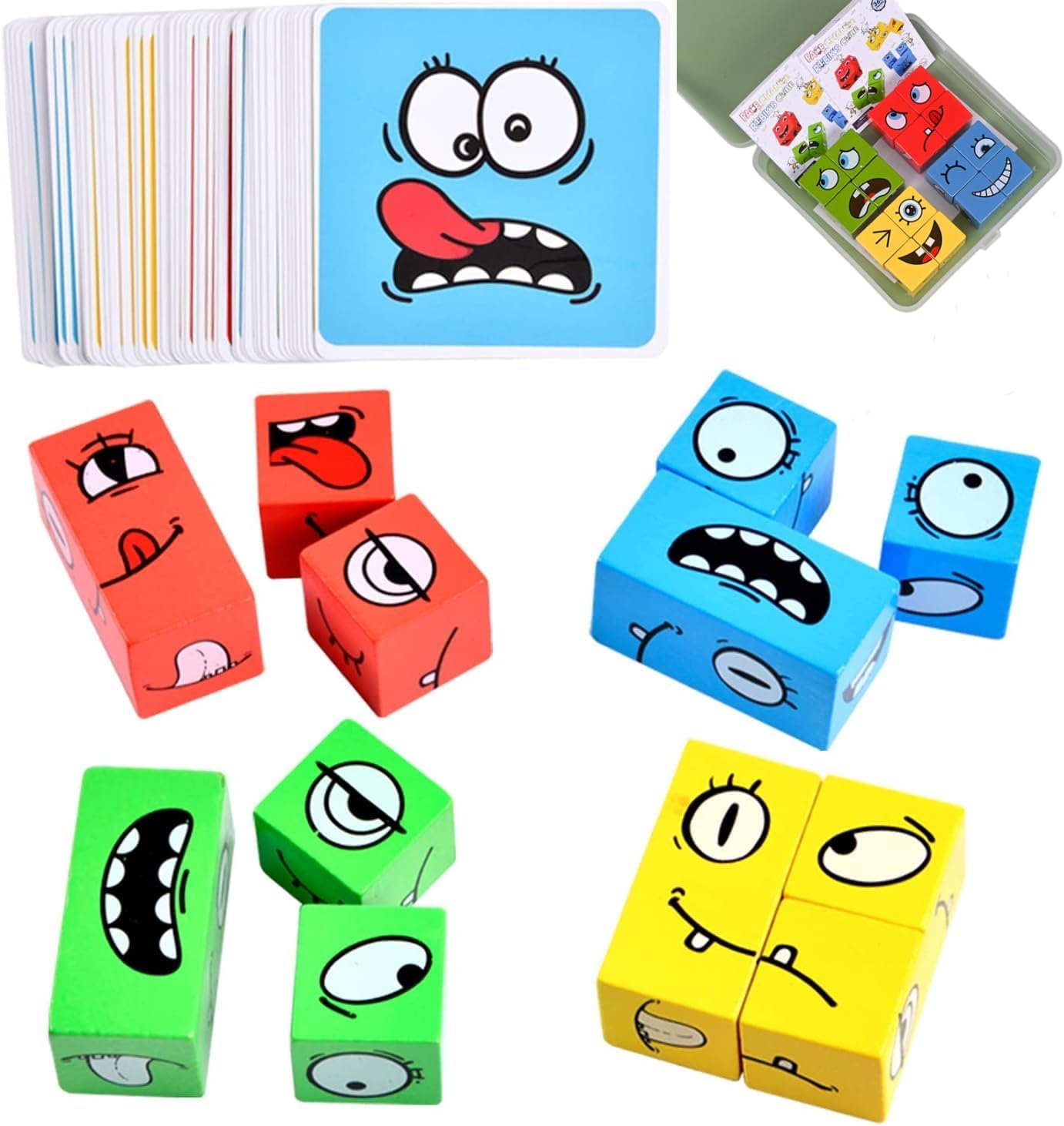 Ce puzzle Montessori a été fabriqué avec du bois massif respectueux de l’environnement, un matériau durable, inodore et non irritant. Les couleurs vives des 16 blocs de bois et des 64 cartes de visage stimulantes ne se décolorent pas facilement, garantissant une expérience ludique durable.