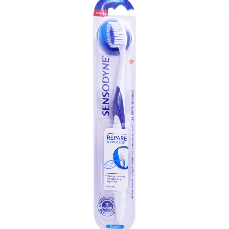 La brosse à dents Sensodyne Répare & Protège a été conçue pour les personnes souffrant de sensibilité dentaire. Elle protège contre le brossage trop vigoureux.
