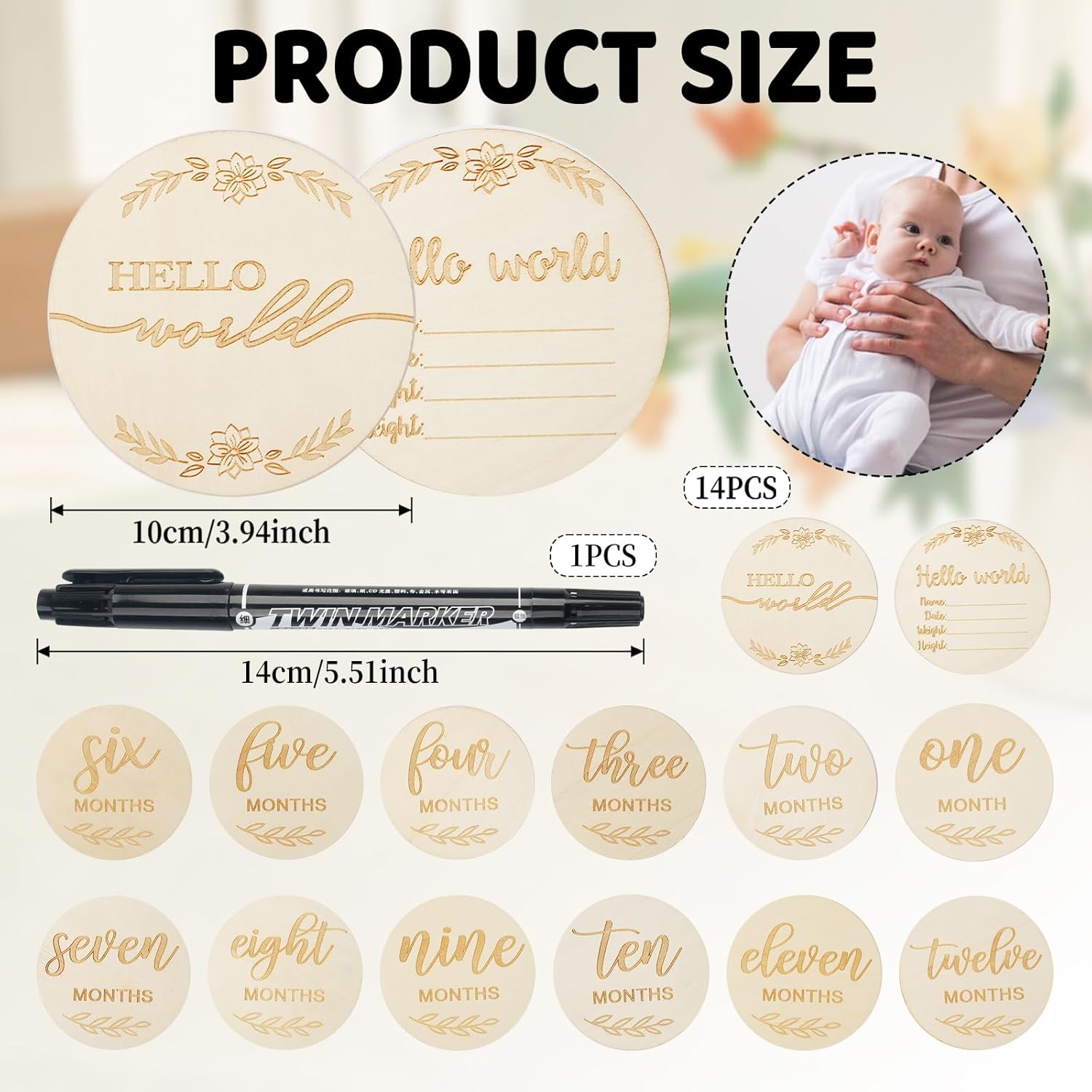 Transformez chaque moment précieux en un souvenir intemporel grâce à ce set de panneaux en bois pour étapes et annonces bébé. Composé de 14 plaques en bois de haute qualité et d’un stylo noir, ce kit est idéal pour immortaliser la croissance de votre enfant mois après mois. Chaque panneau, mesurant 10 cm, devient un compagnon unique pour accompagner les premières années de votre bébé.