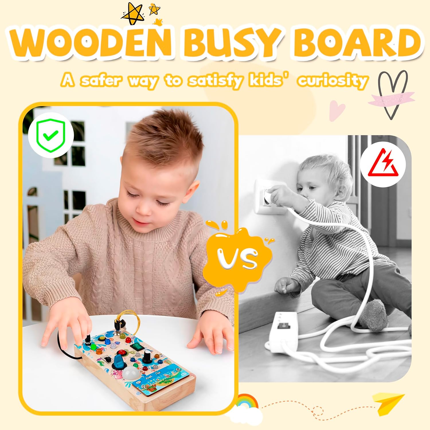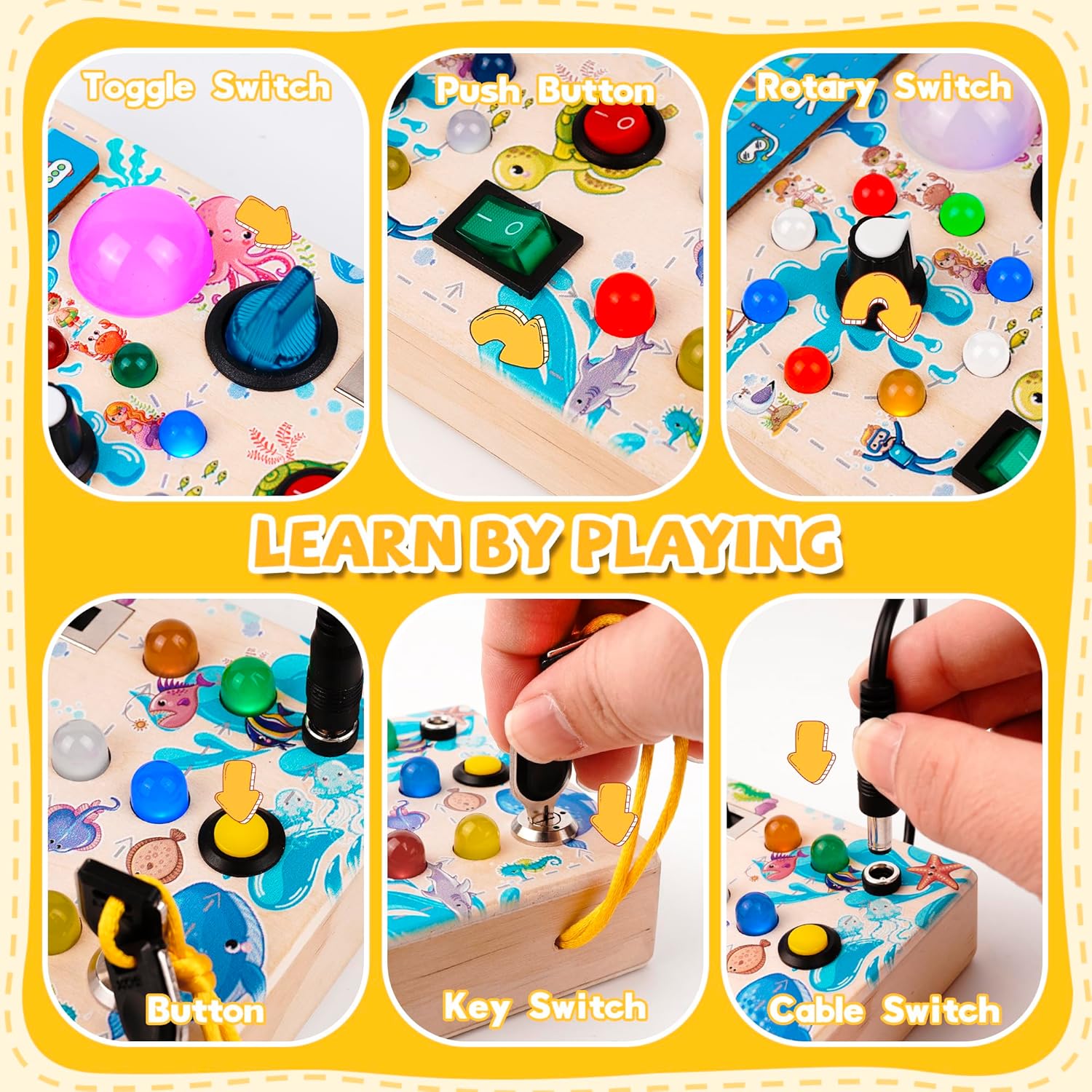 La table d’activités Montessori lumineuse en bois est bien plus qu’un simple jouet. Avec ses 8 interrupteurs interactifs et ses 15 LED colorées, elle offre une expérience sensorielle unique qui stimule la curiosité naturelle des enfants tout en développant leur motricité fine. Chaque bouton, chaque lumière et chaque action invite votre enfant à explorer, à expérimenter et à apprendre de manière ludique.