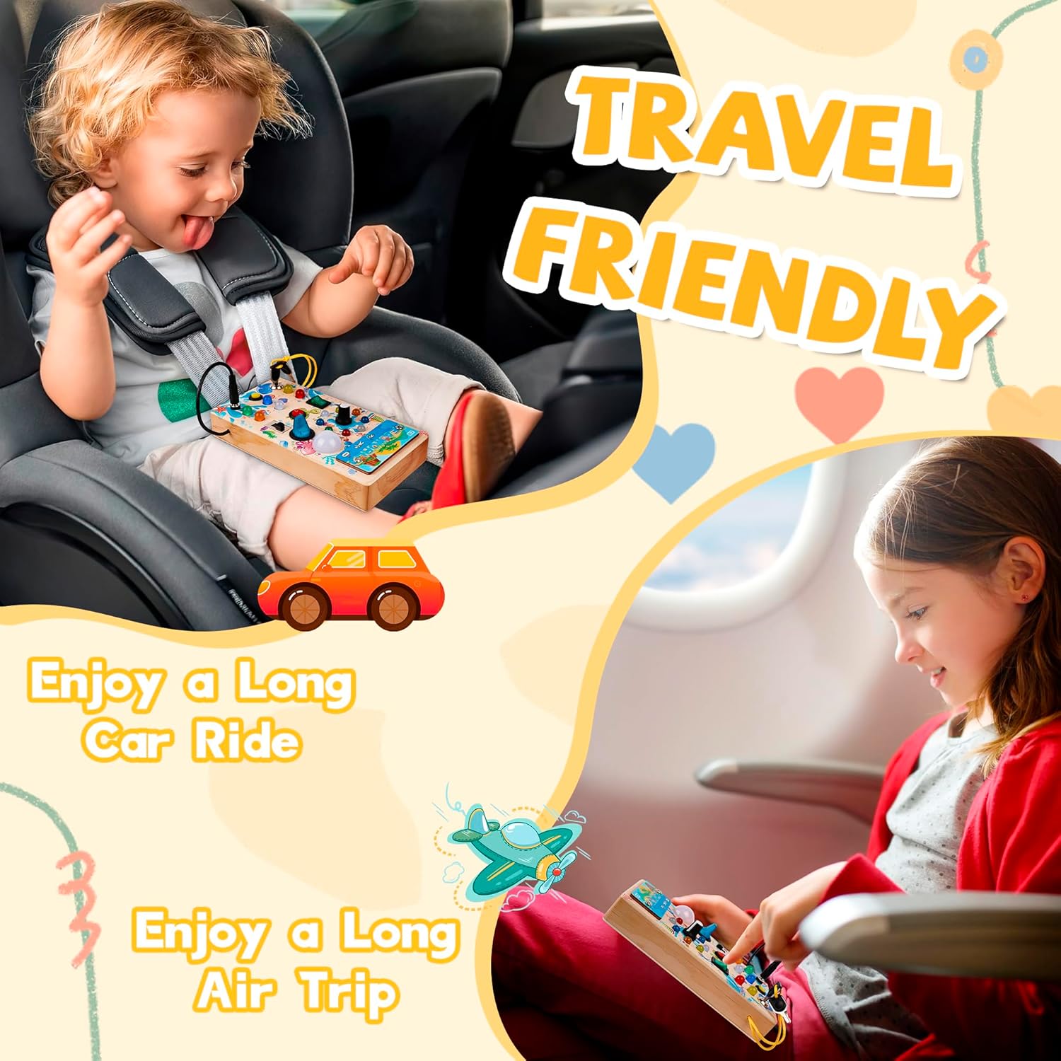 Compacte et pratique, cette table d’activités est facile à transporter grâce à son format de 7,3 x 3,8 x 1,3 pouces et son sac inclus. Que ce soit en voiture, en avion ou à la maison, elle est parfaite pour occuper votre enfant pendant vos déplacements tout en l’éloignant des écrans. C’est le compagnon idéal pour garder les petits esprits curieux engagés où que vous soyez.