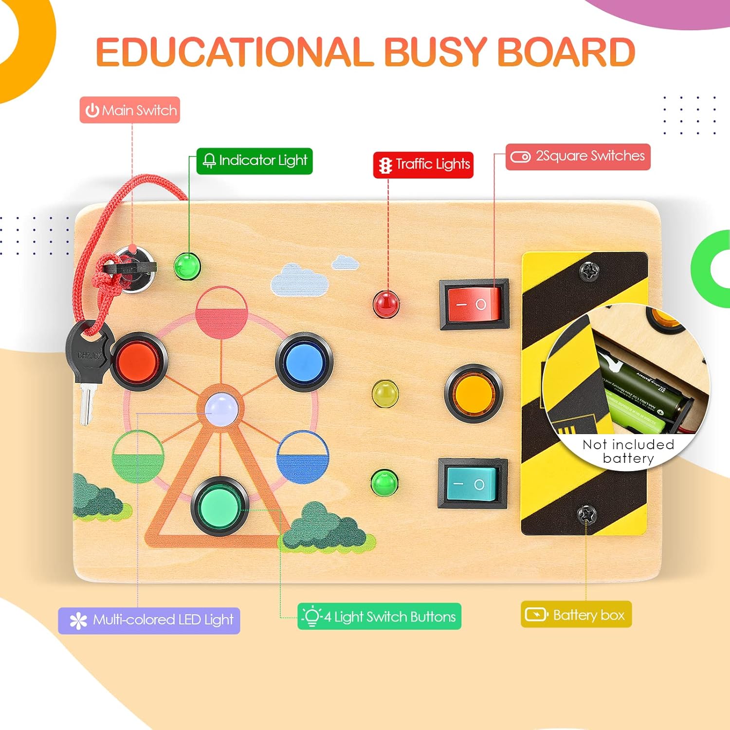 Tableau d’activité Montessori Busy Board LED pour enfants de 2 à 4 ans