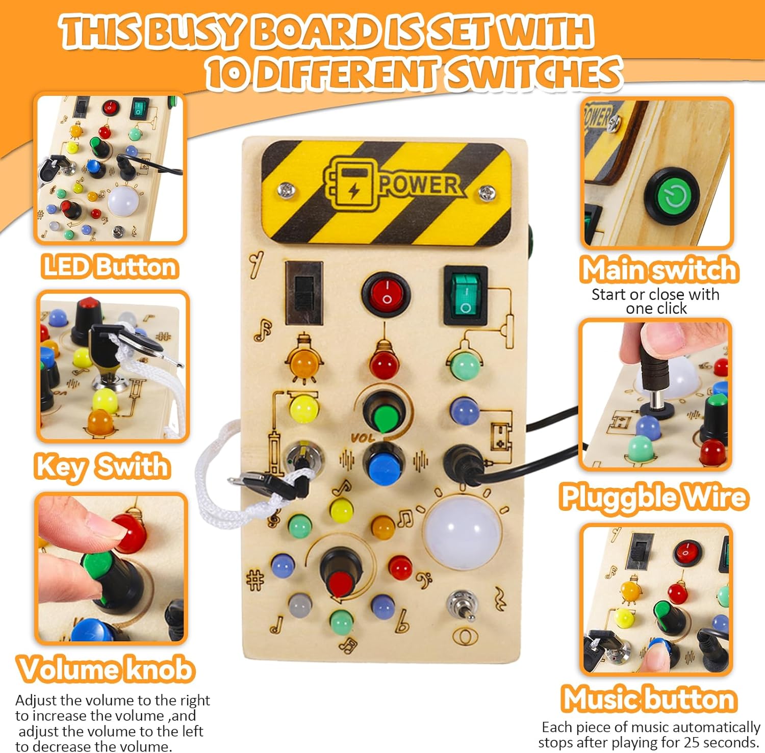 Enrichissez l’expérience de jeu de votre enfant avec le Tableau d’activité Montessori MQVXT. Les enfants manipulent différents interrupteurs qui déclenchent des lumières LED correspondantes, promouvant ainsi l’exploration de la cause à effet et le développement de la pensée logique.