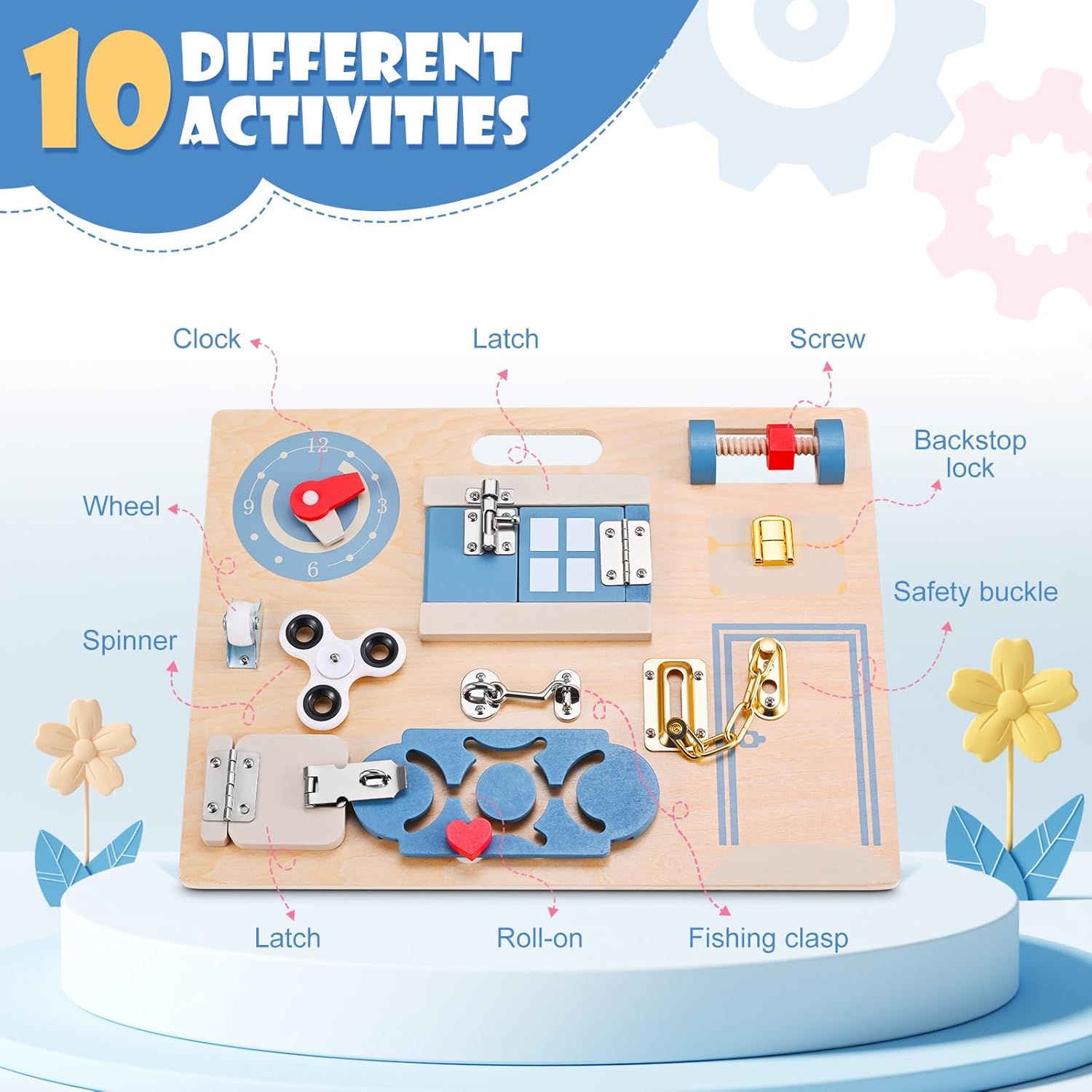 Découvrez le Tableau Montessori Do-Electr, une planche d’activité spécialement conçue pour les enfants de 1 à 3 ans. Avec ses dimensions optimisées de 3 x 25 x 30 cm et son poids de seulement 1,1 kilogrammes, cette planche d’activité Montessori offre une expérience ludique et éducative sans pareille.Composée de 10 activités interactives, ce tableau éducatif comprend des horloges, des loquets, des vis, des antidévireurs, des mousquetons, des mécanismes roulants, des fermoirs de pêche, des toupies et des roues. Toutes ces activités ont été pensées pour stimuler la curiosité des enfants et encourager leur apprentissage précoce.