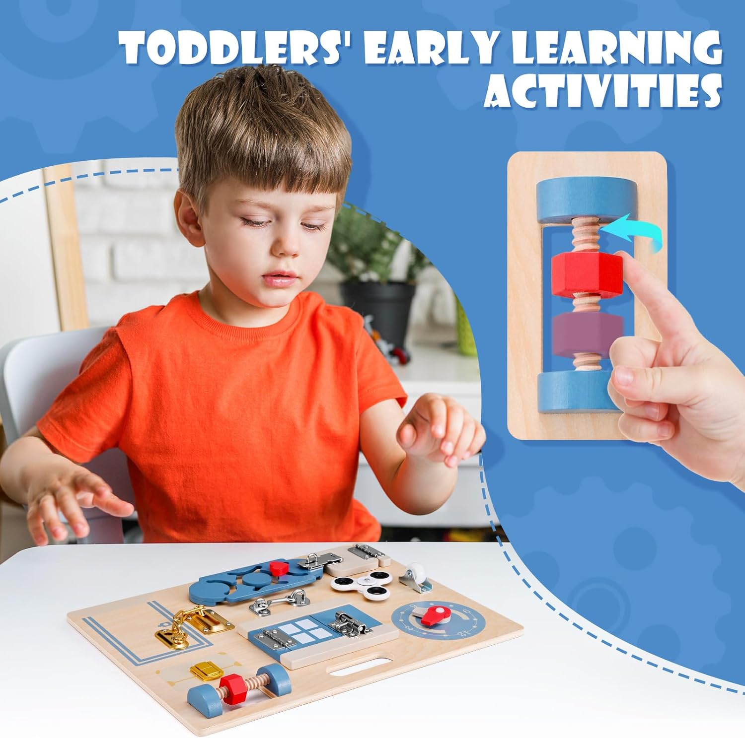 Busy board Montessori 3 en 1 en bois pour enfants dès 3 ans : jeux éducatifs sensoriels