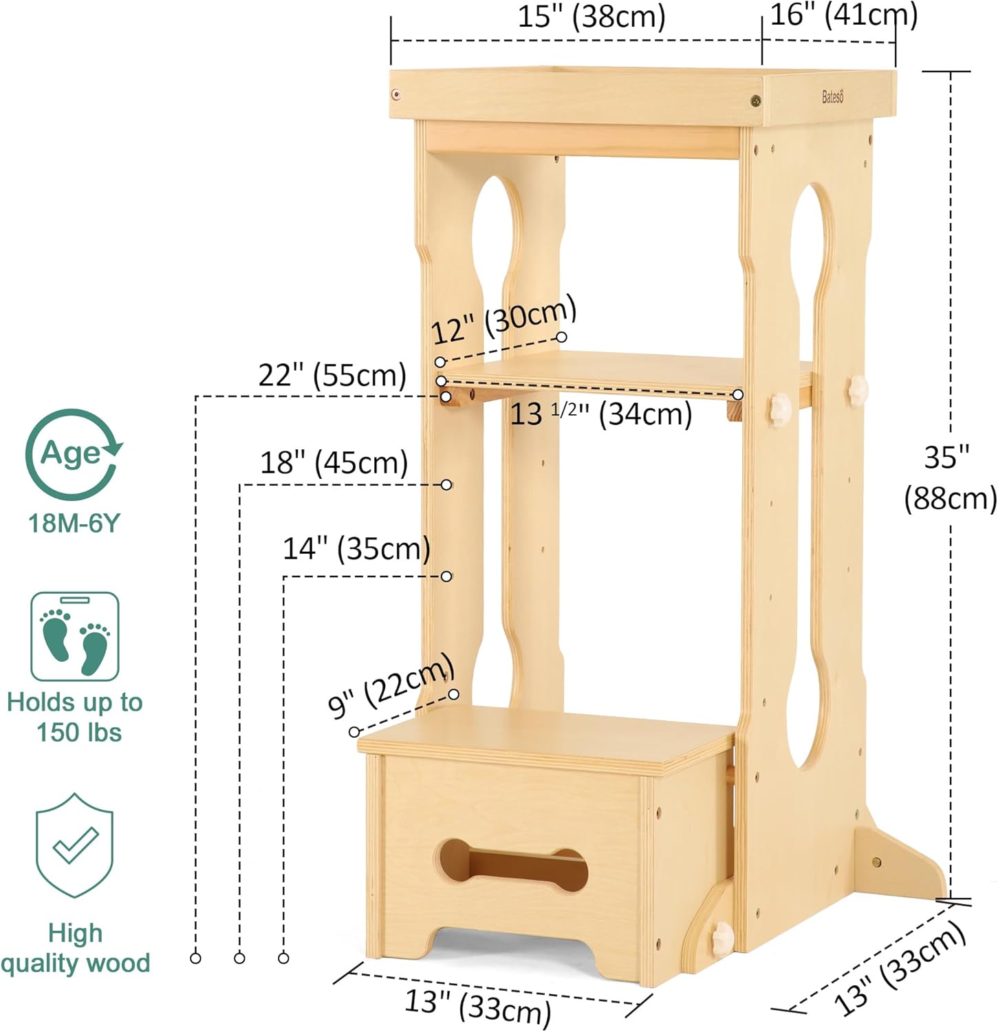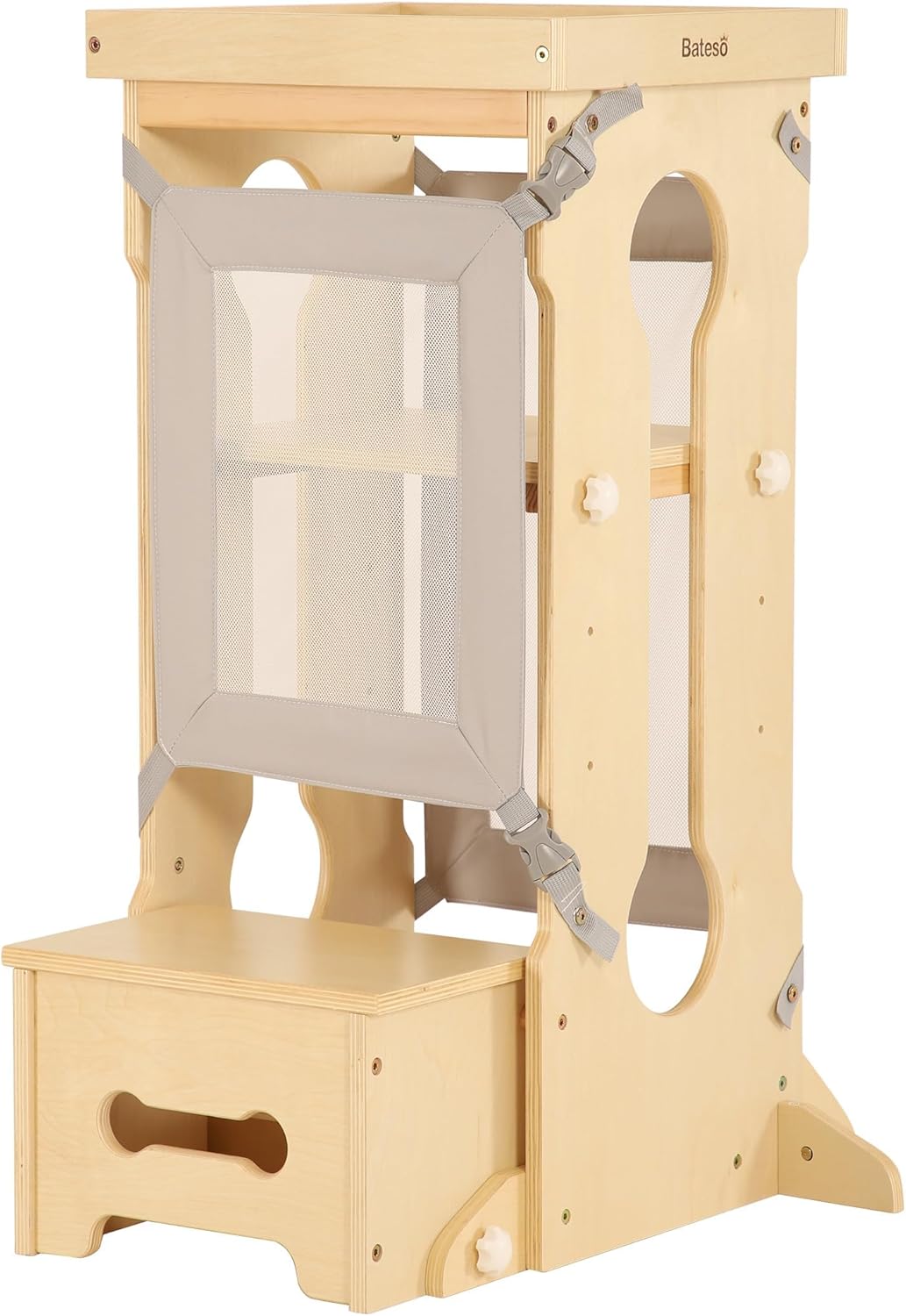 Tabouret de cuisine Montessori pour enfants : tour d’observation avec dossier et découpes variées