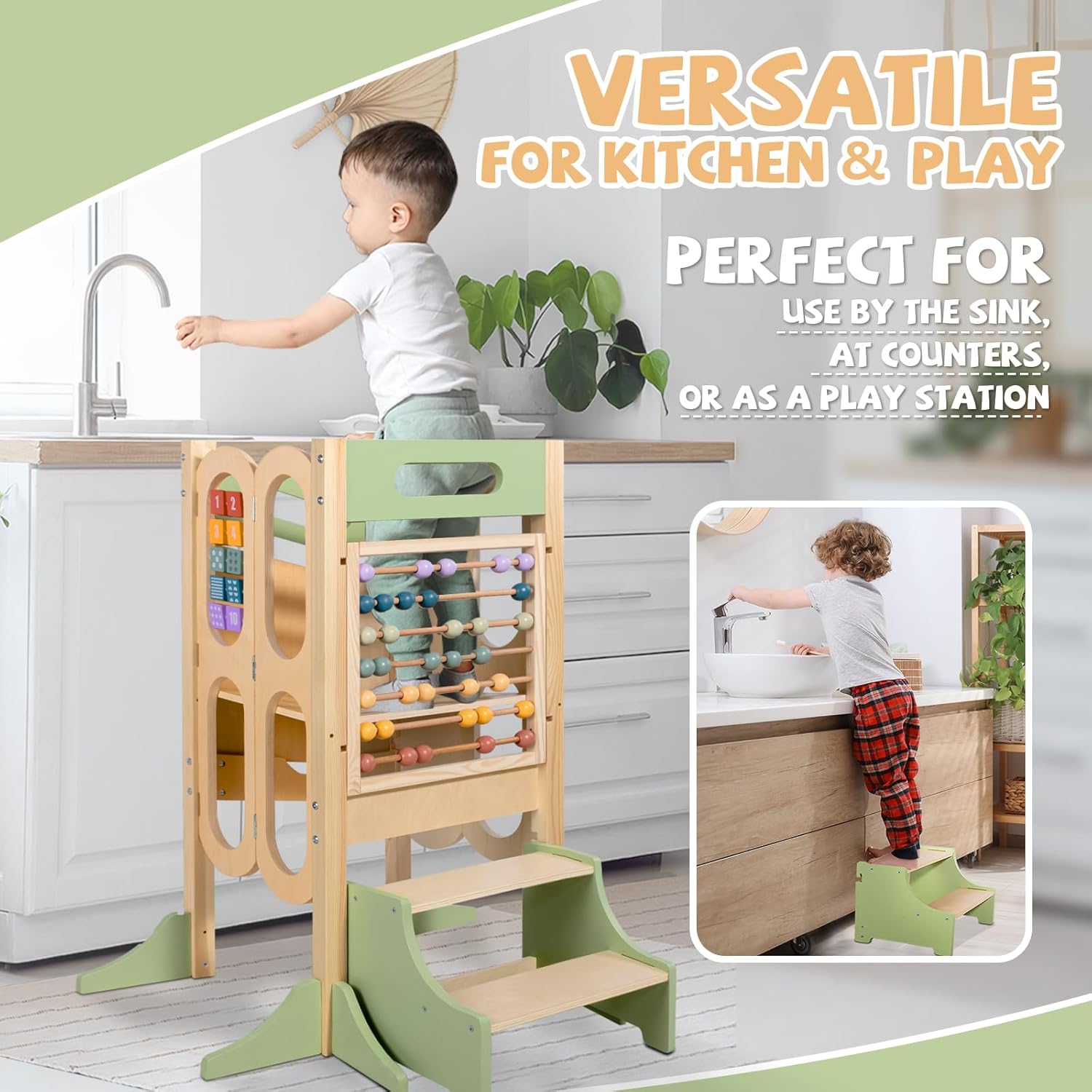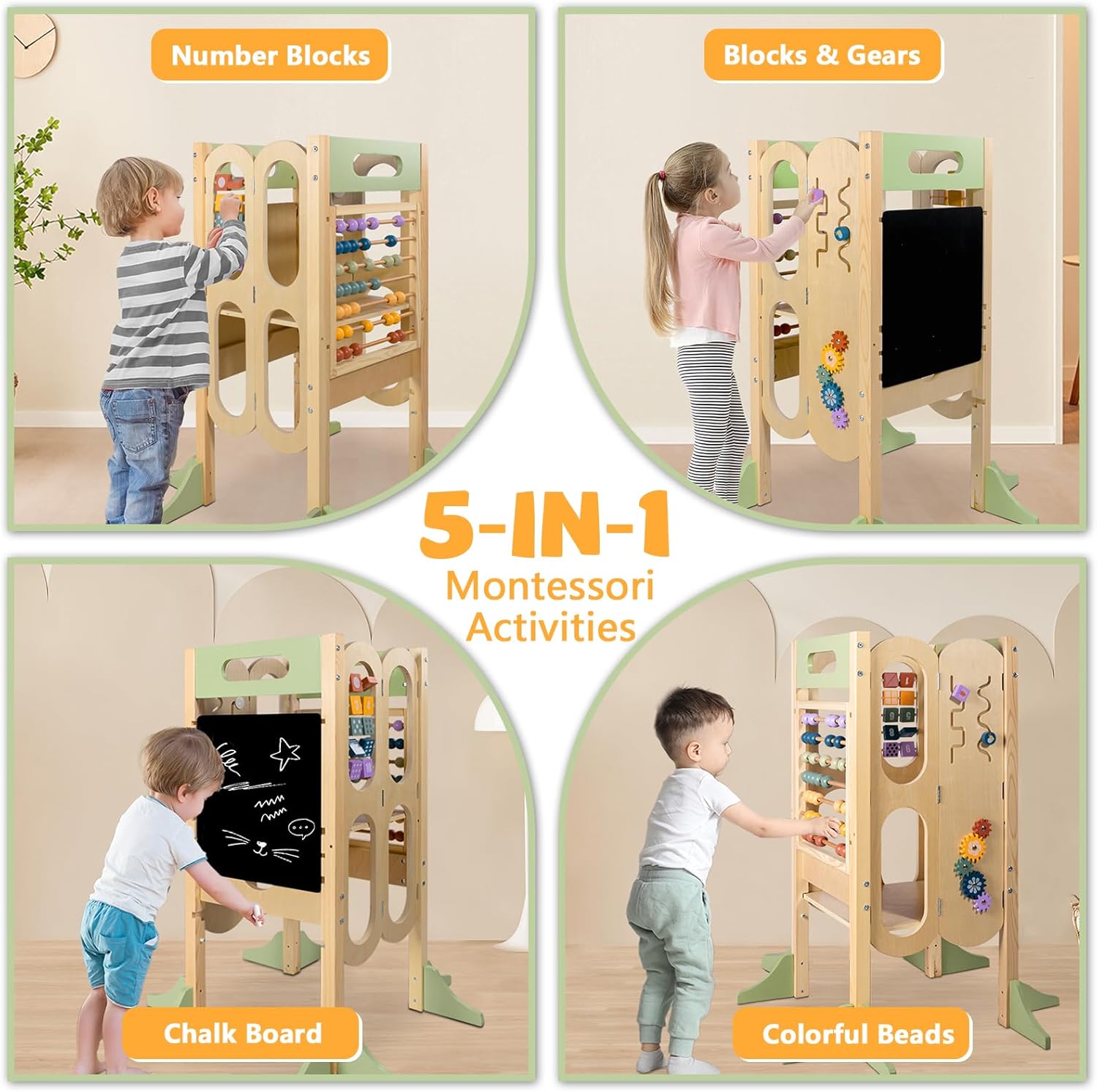 - 6 fonctions en 1 : tour d’apprentissage, marche-pied, station éducative, tableau noir et plus encore.
