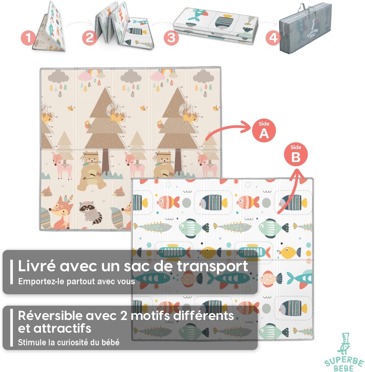 - Tapis d’éveil : Il stimule le développement sensoriel de votre enfant.
