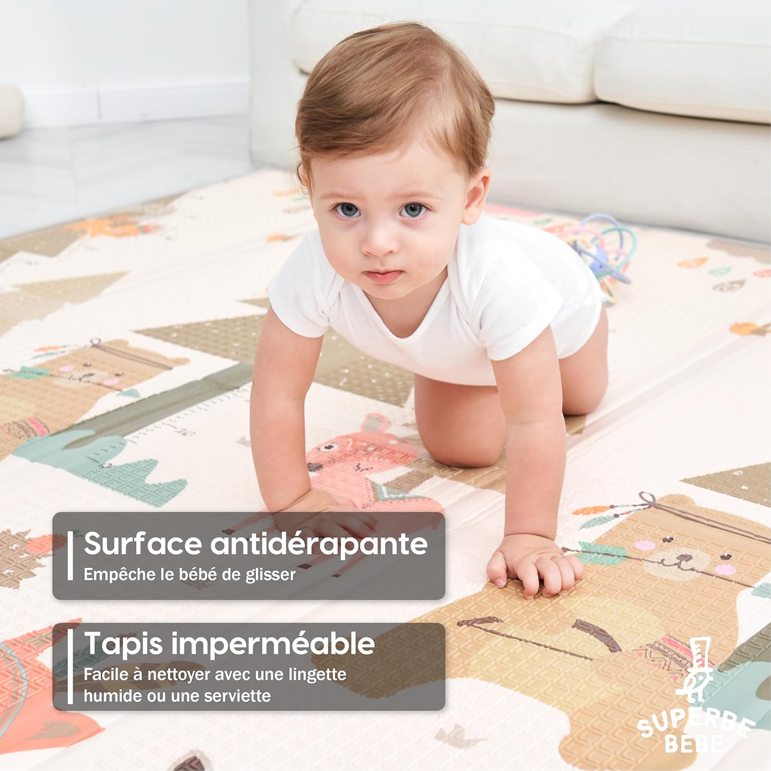 Tapis d’éveil bébé Aiious 200x180cm : Montessori, pliable et antidérapant pour l’intérieur et l’extérieur