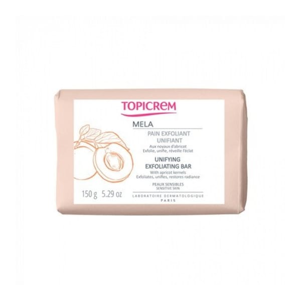 Le Pain Exfoliant Unifiant de la gamme MELA des Laboratoires Topicrem est un savon adapté aux peaux sensibles.