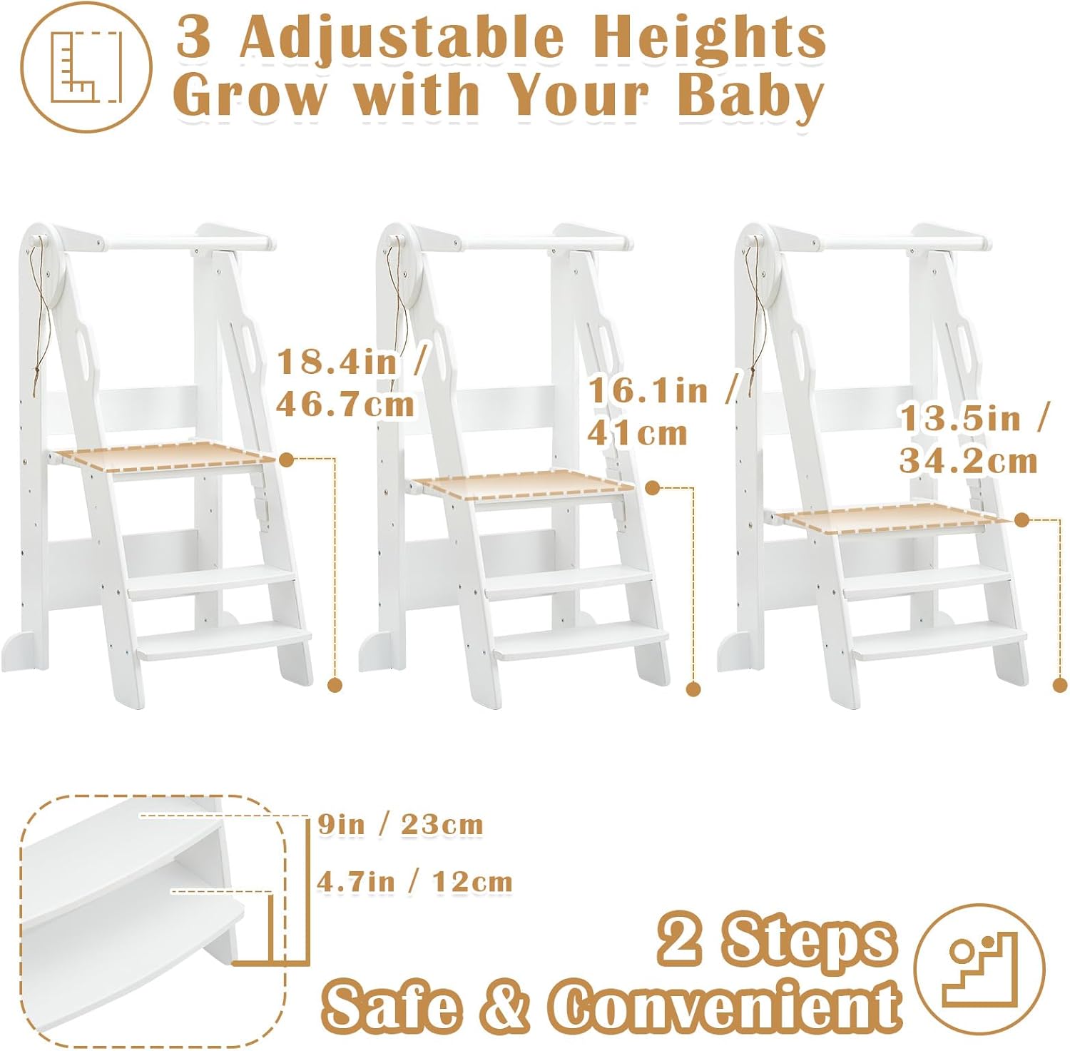 Tabouret de cuisine Montessori pour enfants : tour d’observation avec dossier et découpes variées