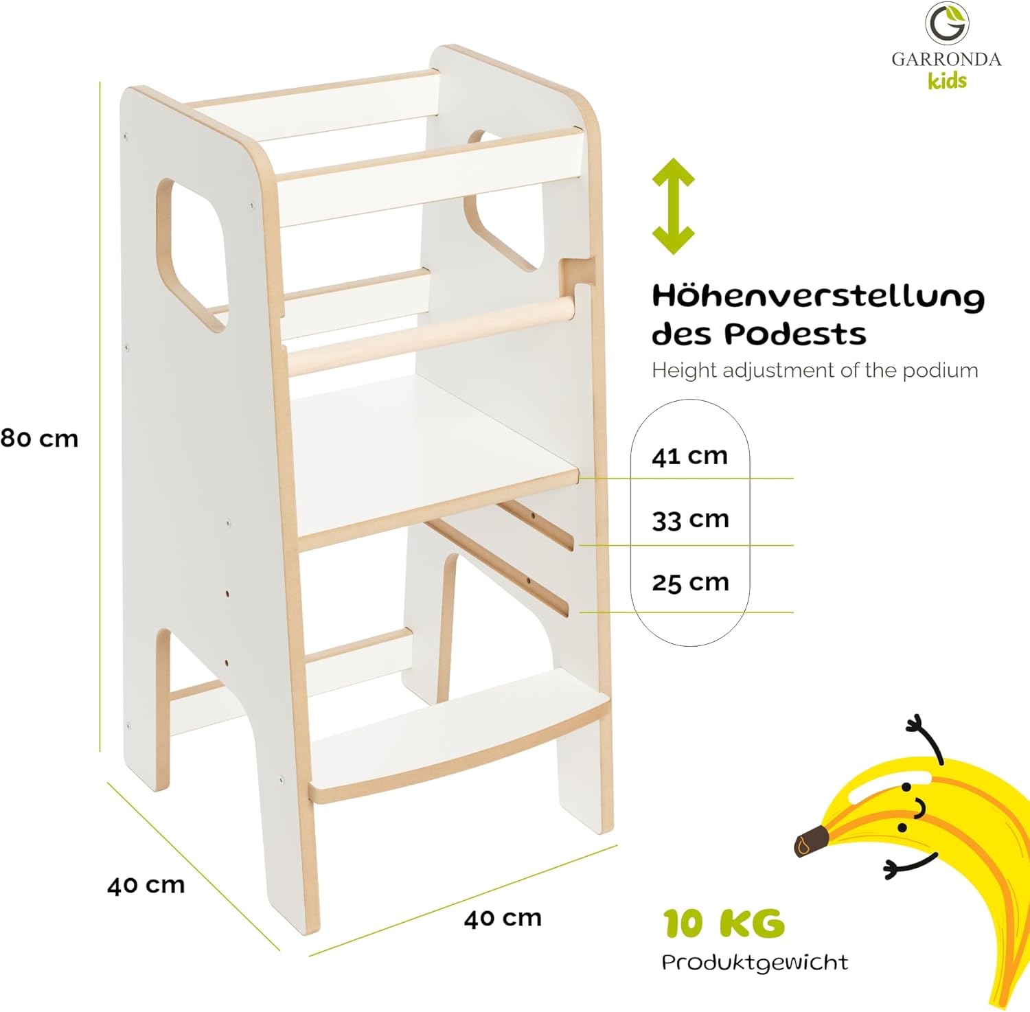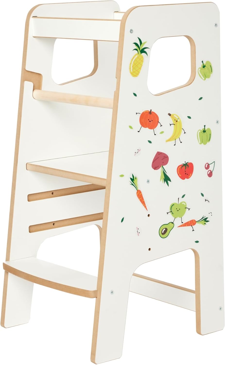Tabouret de cuisine Montessori pour enfants : tour d’observation avec dossier et découpes variées
