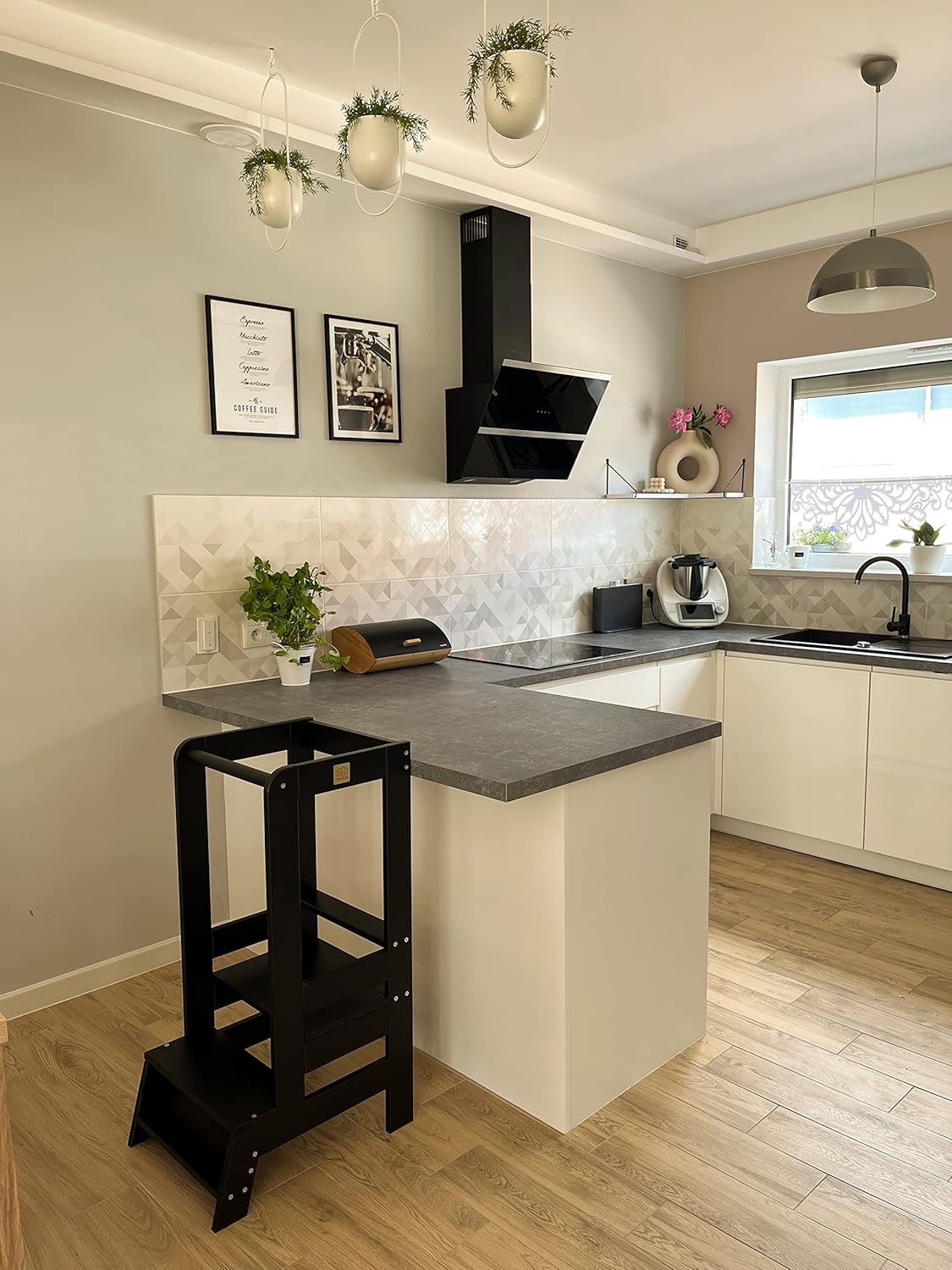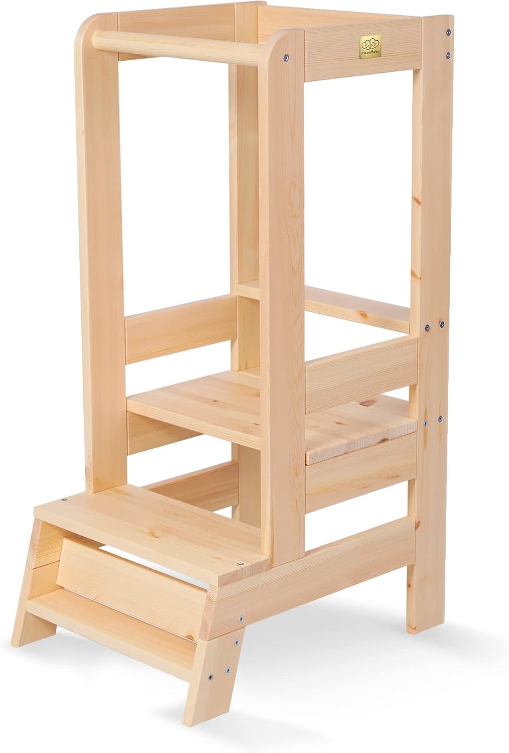Tabouret de cuisine Montessori pour enfants : tour d’observation avec dossier et découpes variées