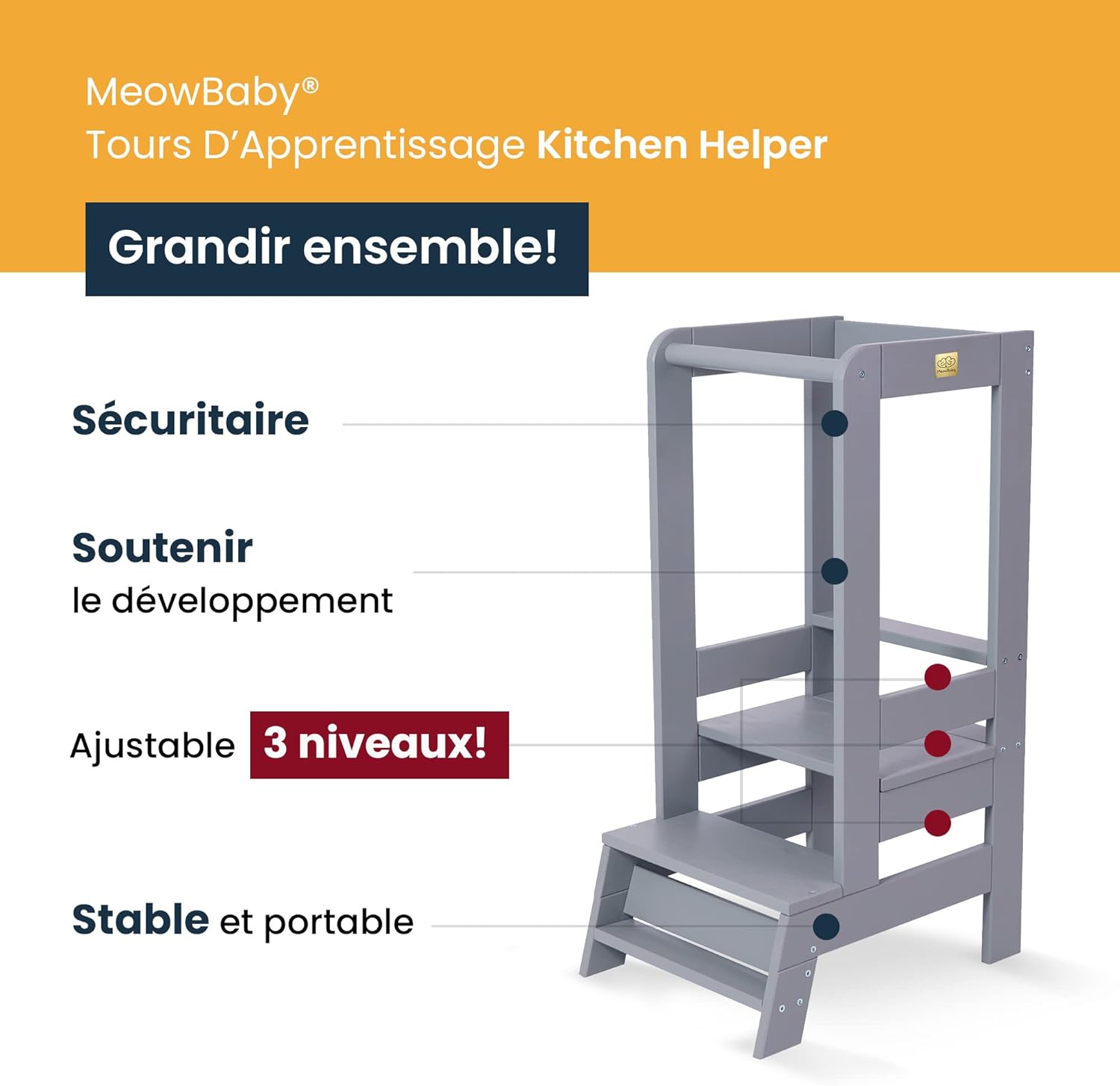 Élever un enfant autonome n’est pas une mince affaire. La Tour d’observation Montessori Meowbaby en bois naturel offre une solution unique et innovante pour promouvoir l’indépendance de votre enfant dès son plus jeune âge. Conçu pour permettre à votre enfant de travailler à hauteur d’adulte, cet outil encourage la participation active dans la cuisine, favorisant ainsi le développement de compétences précieuses qui lui serviront toute sa vie.
