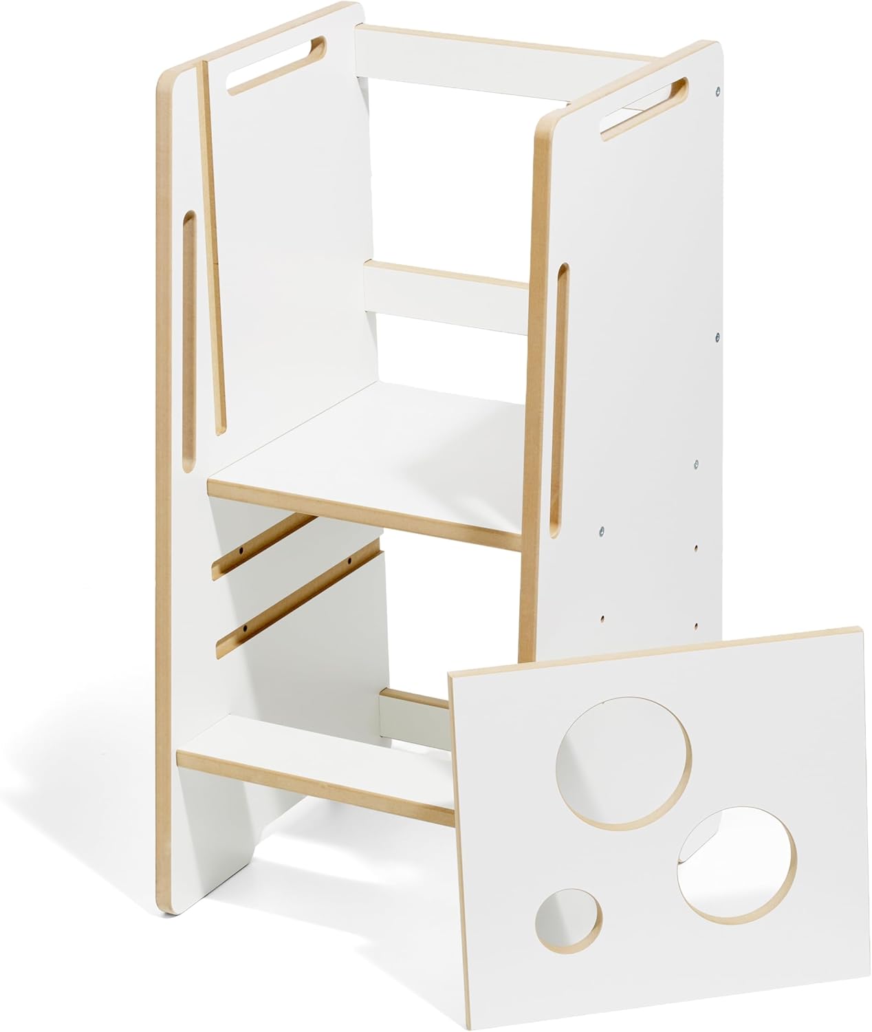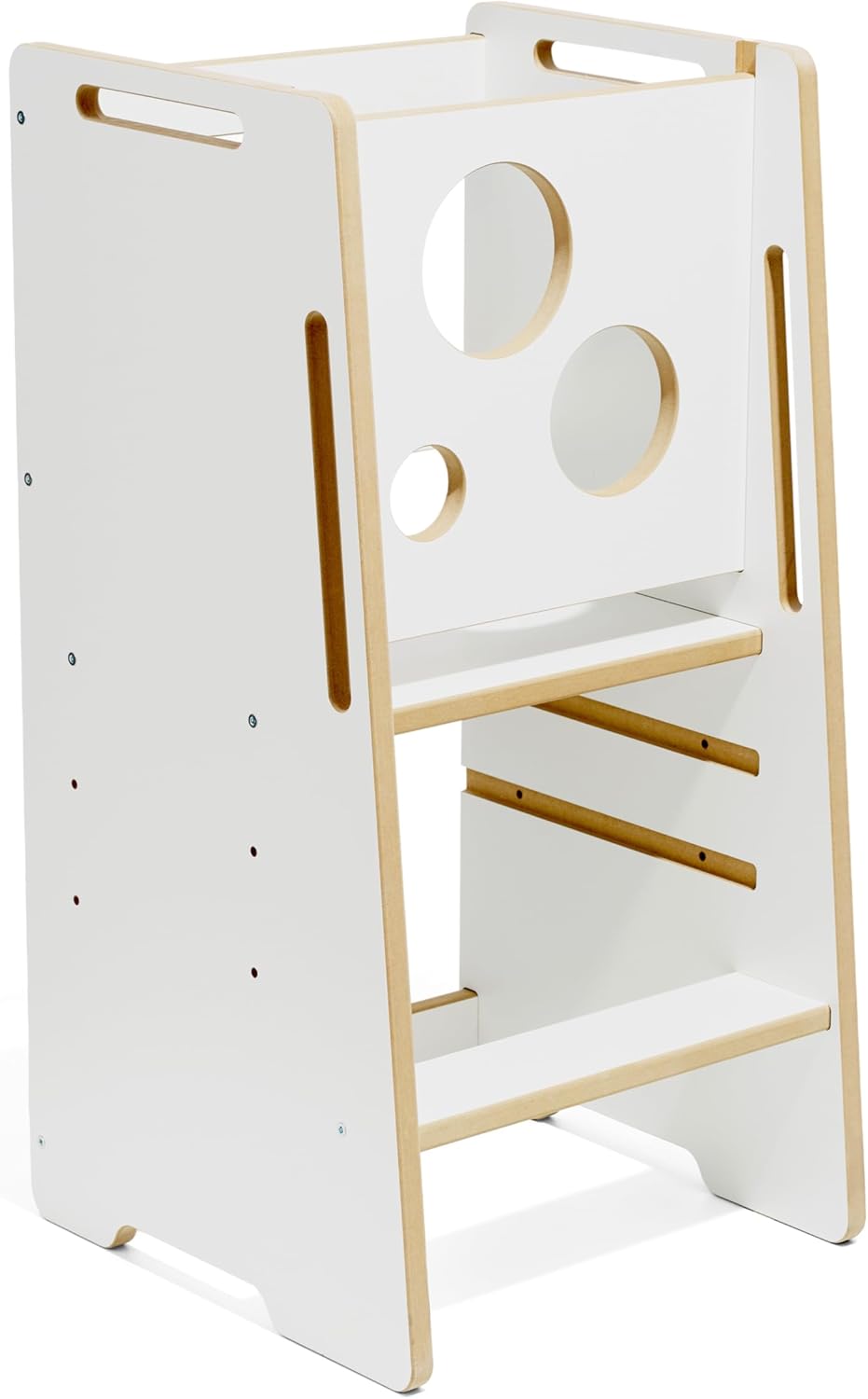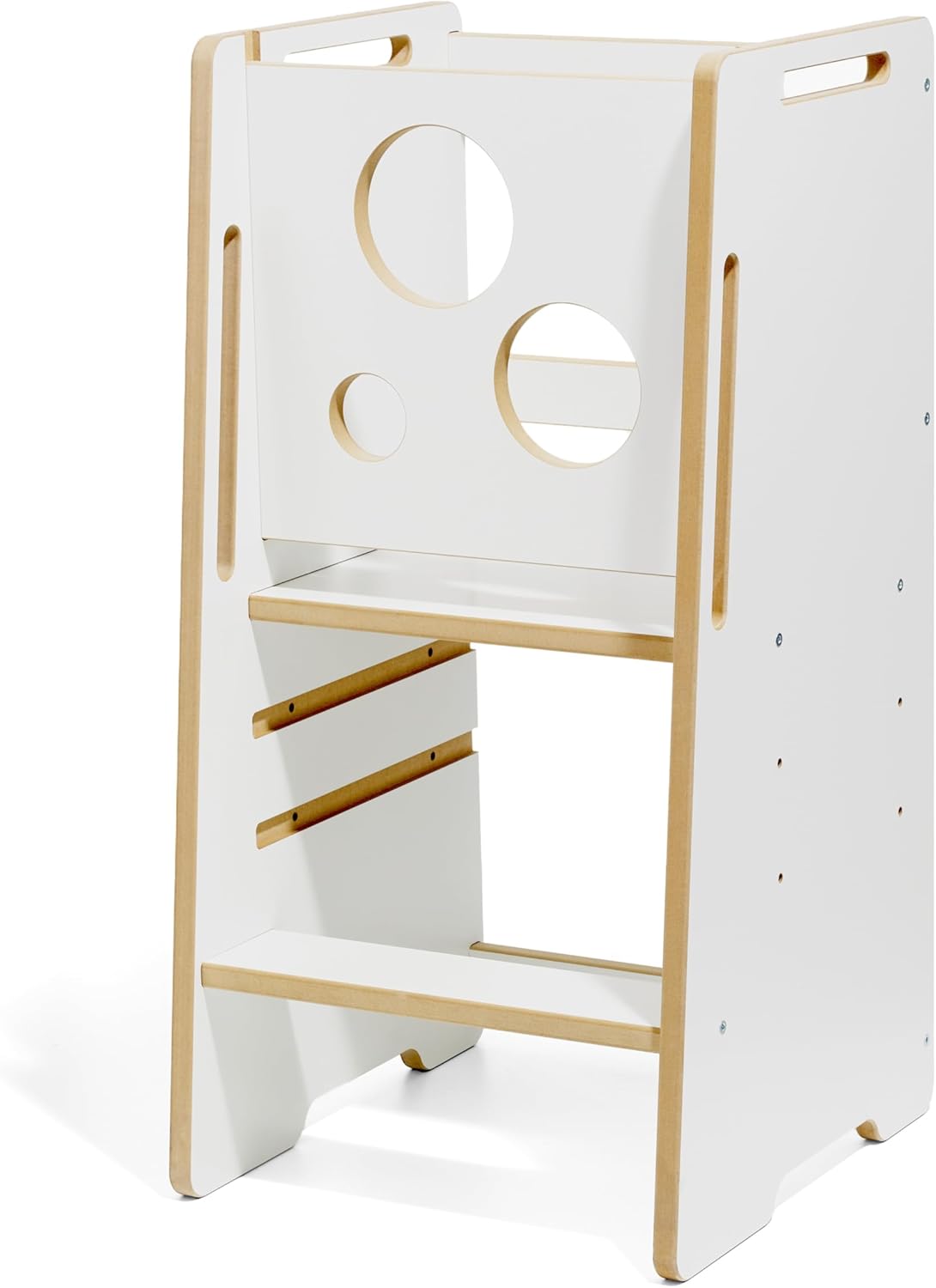 Tabouret de cuisine Montessori pour enfants : tour d’observation avec dossier et découpes variées