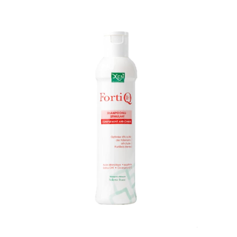 Forti Q10 SHAMPOING STIMULANT COMPLEMENT ANTI-CHUTE Optimise l’efficacité des traitements anti-chute – Fortifie les cheveux Forti Q10 shampooing lave en douceur les cheveux et cible les principales causes de la chute : la micro-circulation, latrophie du follicule pileux et le vieillissement folliculaire.