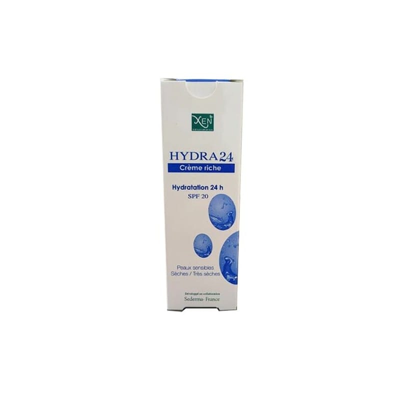 XEN HYDRA 24 RICHE est une crème de jour riche qui respecte la peau sèche et /ou très sèche. La technologie LIPEXEL appliquée aide à reconstituer le film lipidique naturel de la peau. Ce ci ralentit l’évaporation de l’eau (LIPEXEL) et assure une hydratation intense et durable tout en protégeant des rayons UV (SPF 20). Cette crème hydratante 24h est dotée d’une texture onctueuse et riche pour une efficacité immédiate : elle nourrit intensément et réduit les sensations d’inconfort de la peau sèche et très sèche (démangeaisons, picotements, rougeurs…).
